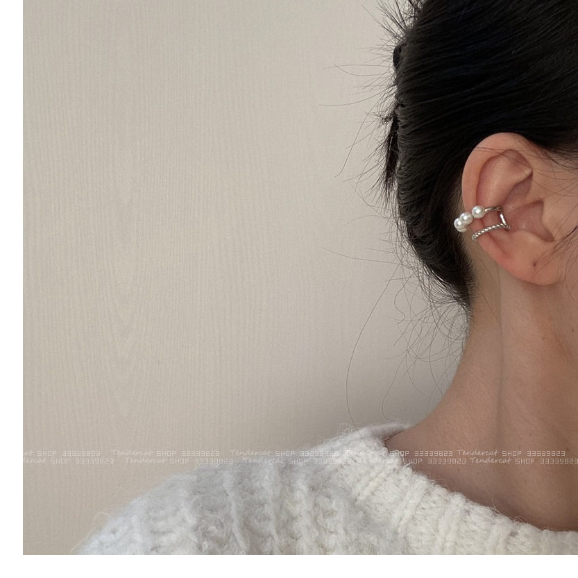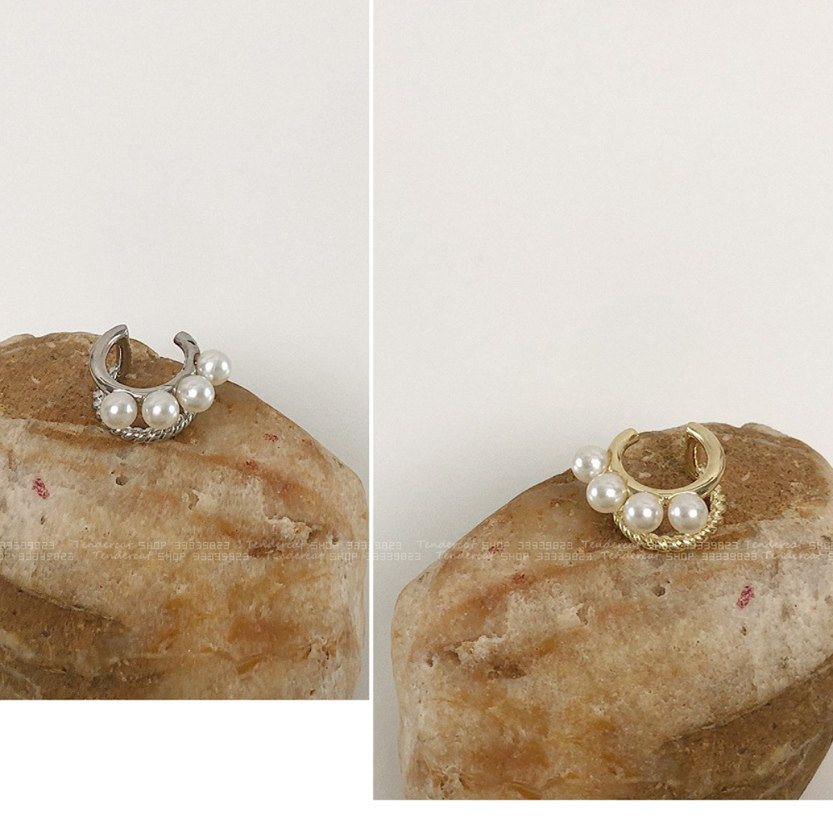 📚 Pearl Earcuffs 珍珠装饰拧花双层C形无耳洞耳骨夹耳夹