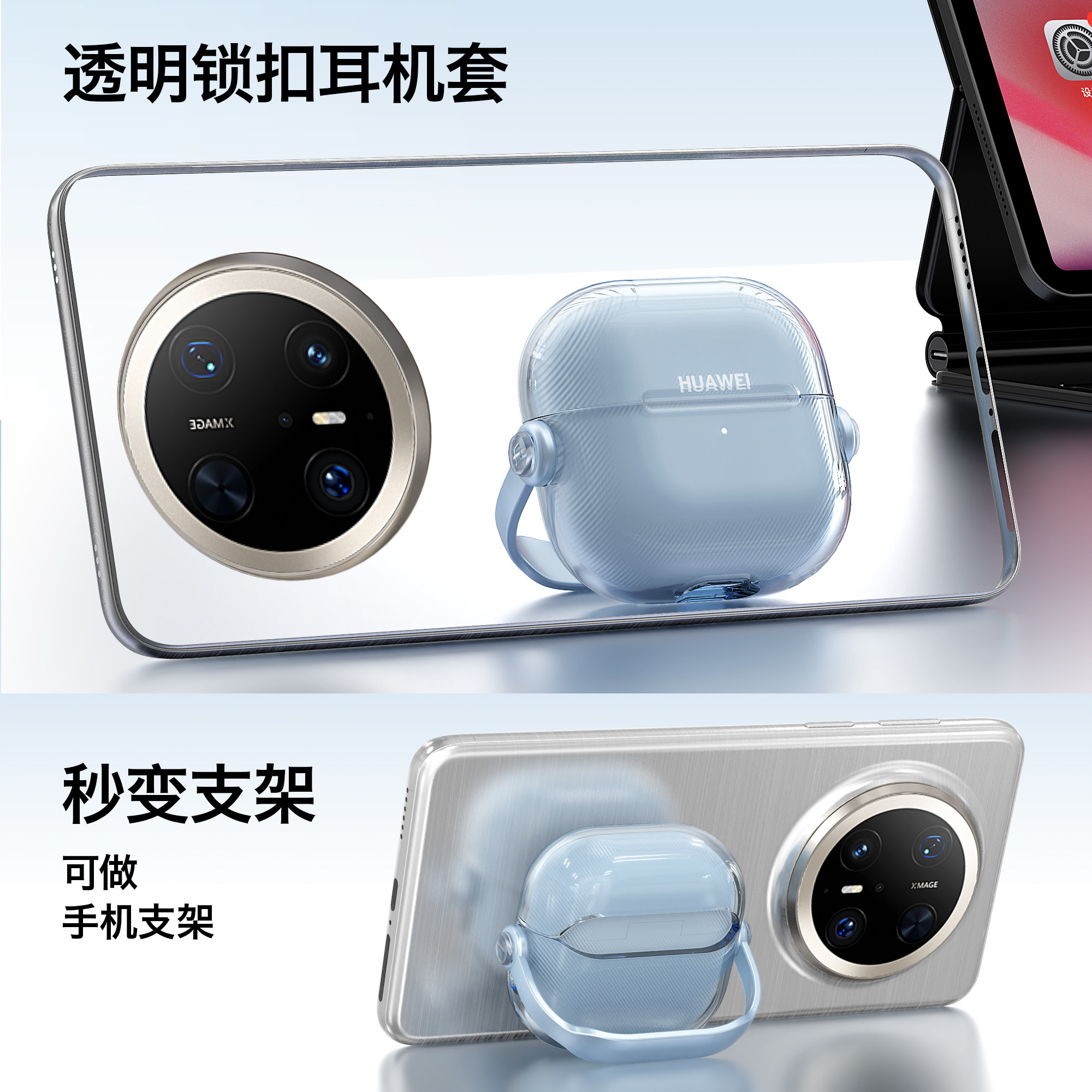📚 适用HUAWEI free clip2耳夹耳机套华为FreeClip2保护套clip二代保护壳蓝牙无线透明充电盒壳锁扣防摔透玫瑰金