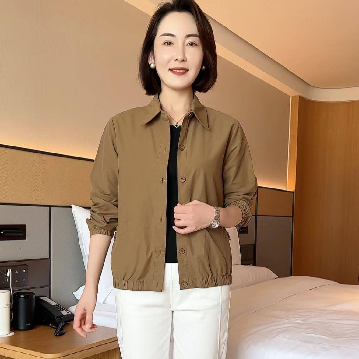📚 宽松短款外套女秋装洋气长袖百搭休闲纯色上衣女妈妈装新款衬衫女