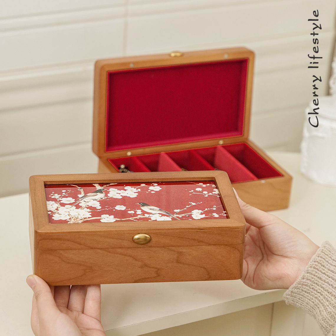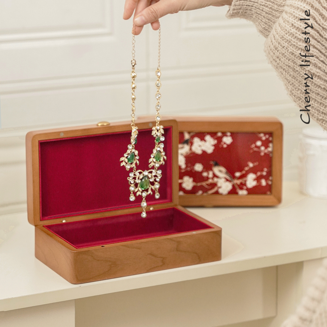 📚 首饰盒新婚礼物结婚五金收纳盒红色饰品盒实用送新娘高档实木轻奢
