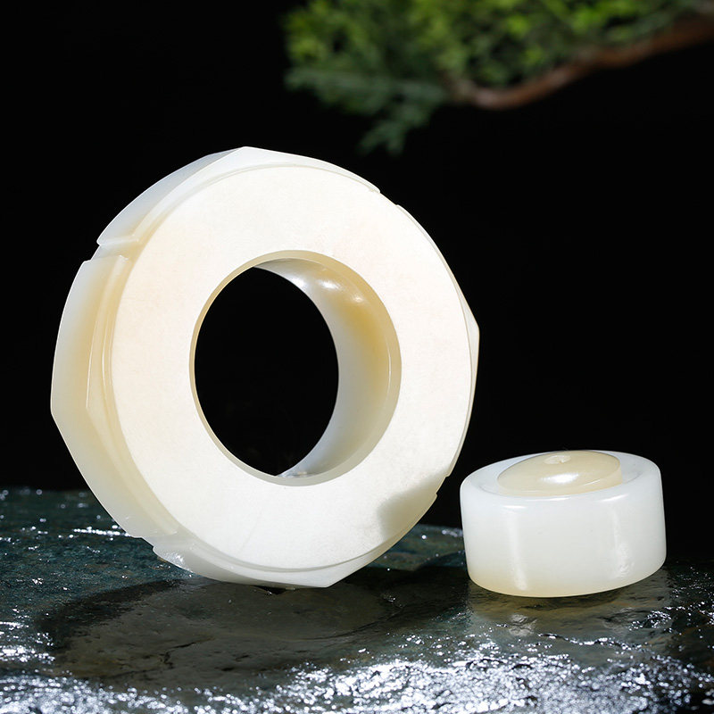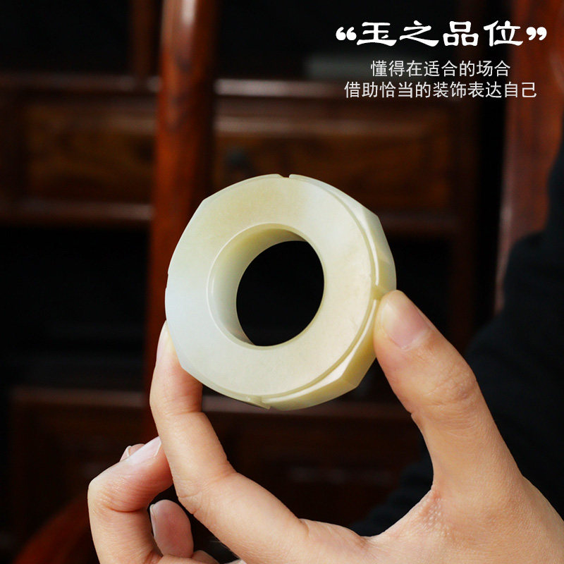 📚 玉说和田玉扳指男款糖白羊脂玉戒指玉琮把件富贵玉石手饰附证书