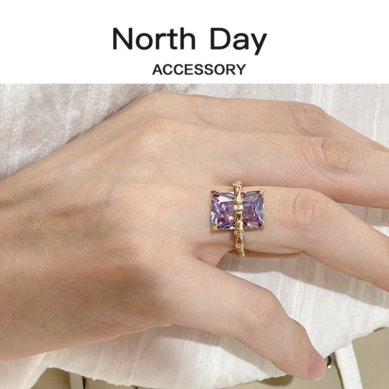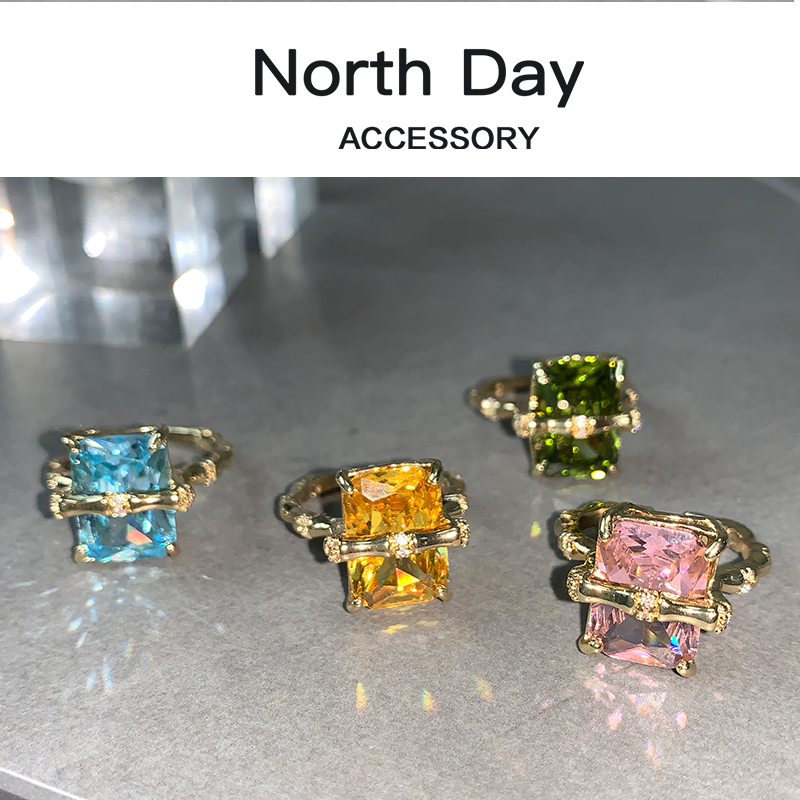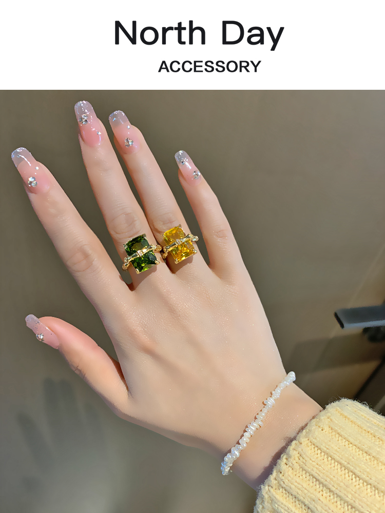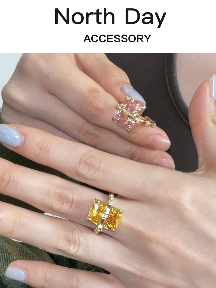 📚 已过质检NorthDay招财黄宝石轻奢竹节包裹缠绕长方形宝石戒指指环