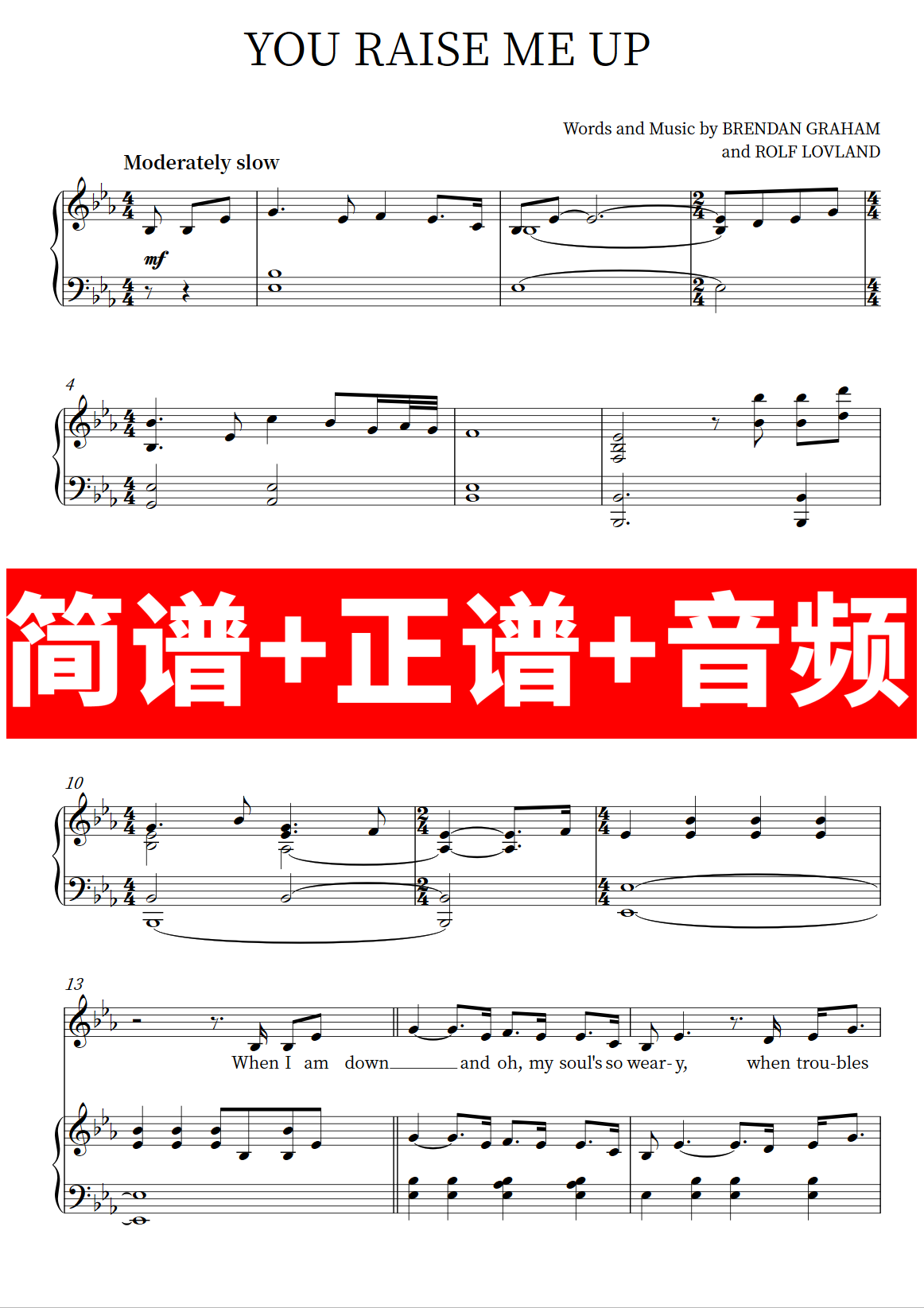 📚 You Raise Me Up 正谱/钢琴伴奏/弹唱