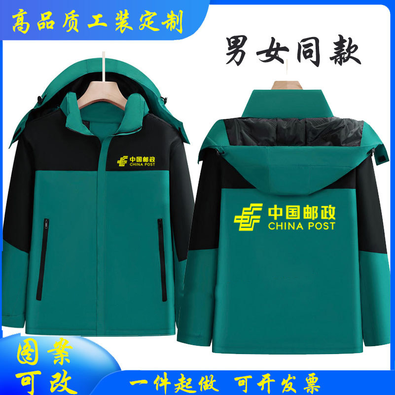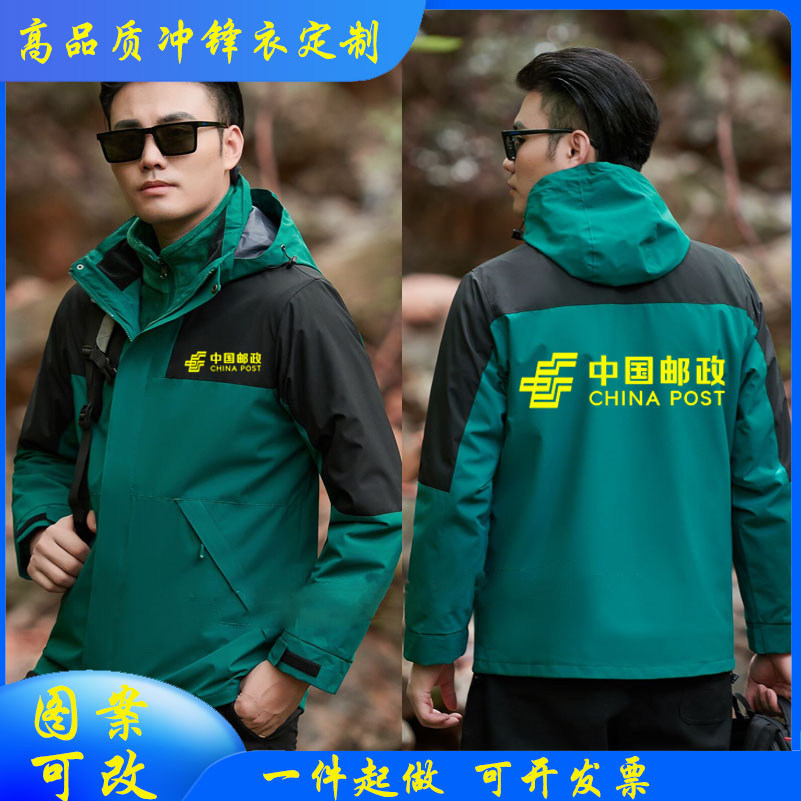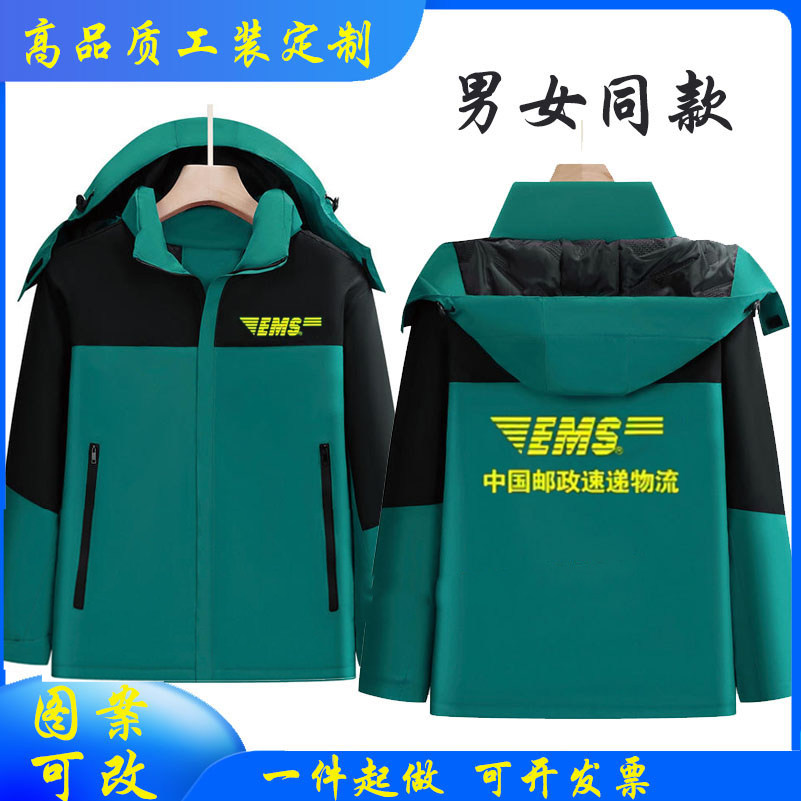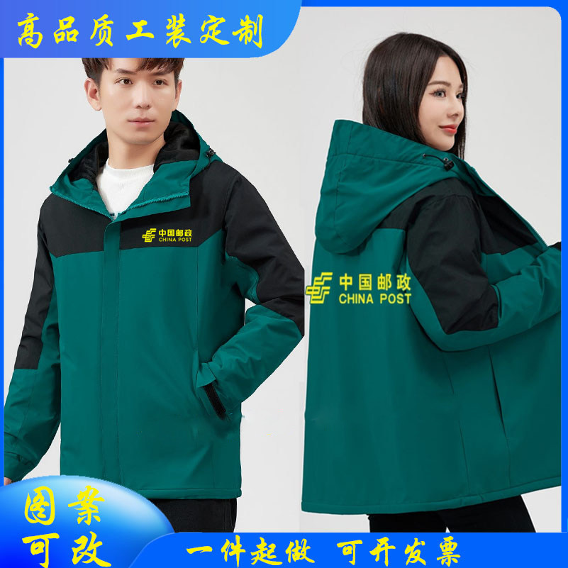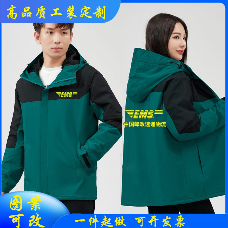 📚 中国邮政工作服冲锋衣定制EMS速递物流快递绿色外套印字logo冬装