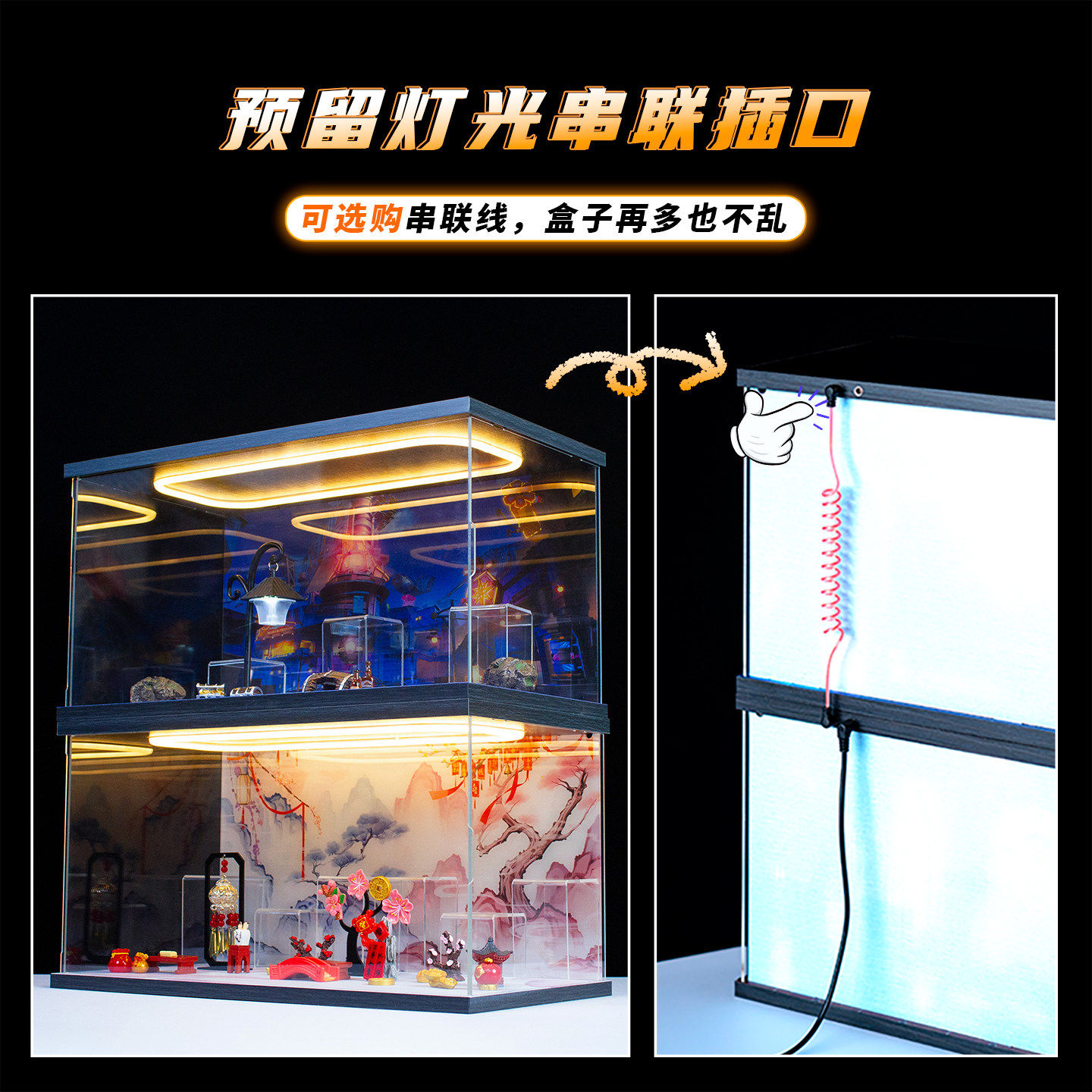 📚 佳寻适用泡泡玛特元神嘉年相聚Q版系列手办盲盒场景盒回灯展示柜