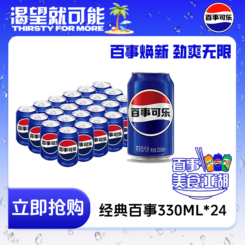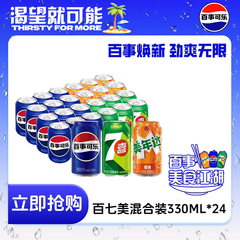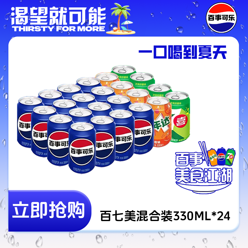 📚 百事可乐七喜美年达经典碳酸饮料330ml*24罐装易拉罐汽水饮料HDT