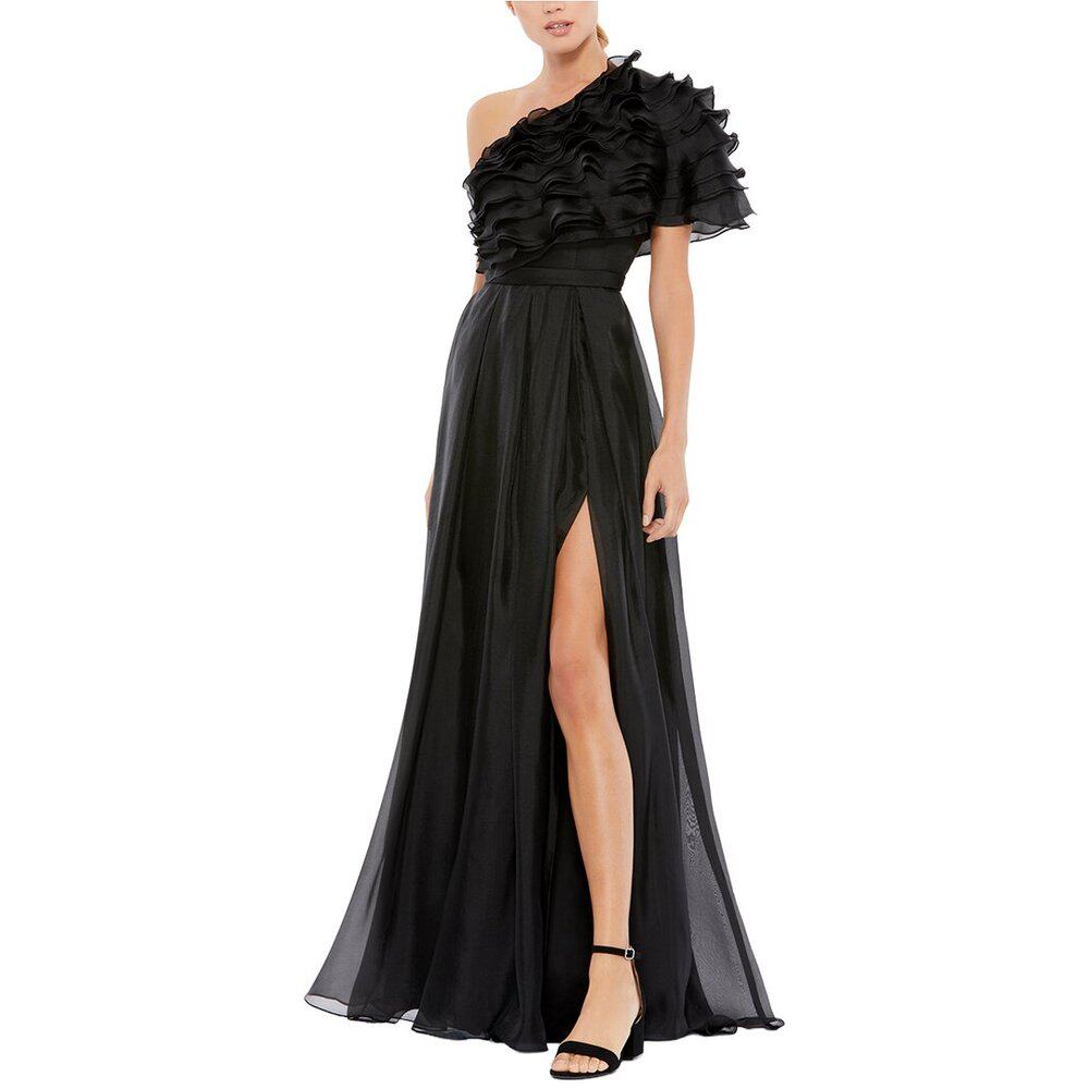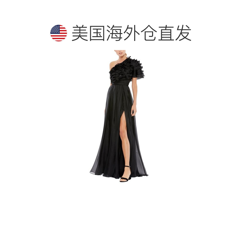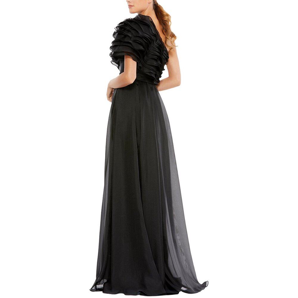 📚 自营Mac Duggal Appliqued One Shoulder Flowy Gown - black 美
