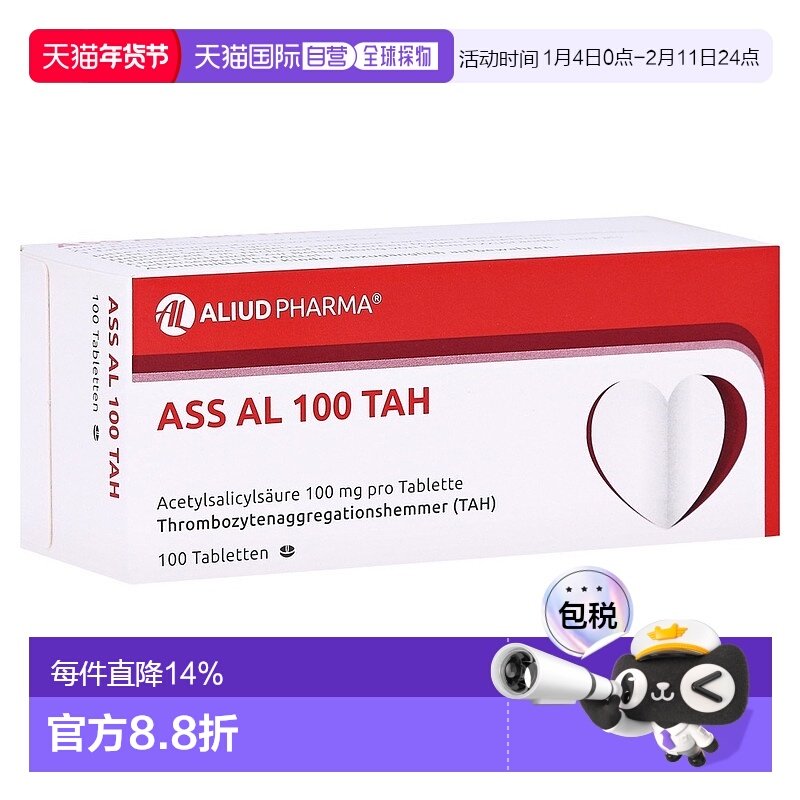 📚 欧洲直邮德国药房ALIUD预防血栓乙酰水杨酸心梗脑梗心绞痛片100粒