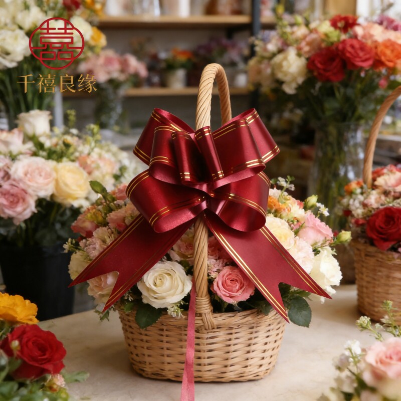 📚 手拉花婚车装饰蝴蝶结拉花扎花礼品鲜花包装抽花彩条绑书丝带书本