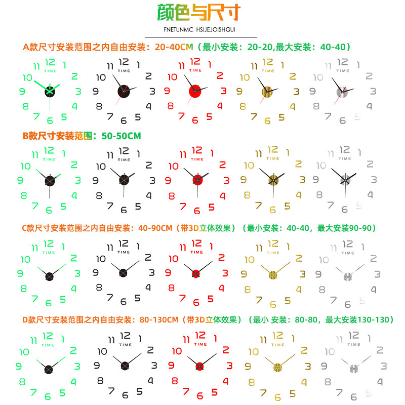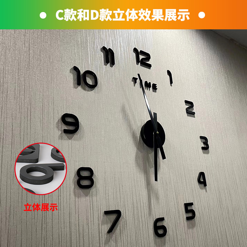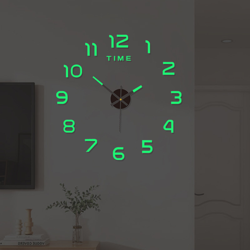📚 夜光数字免打孔客厅挂钟卧室简约现代3D立体时钟圆形静音贴墙钟表