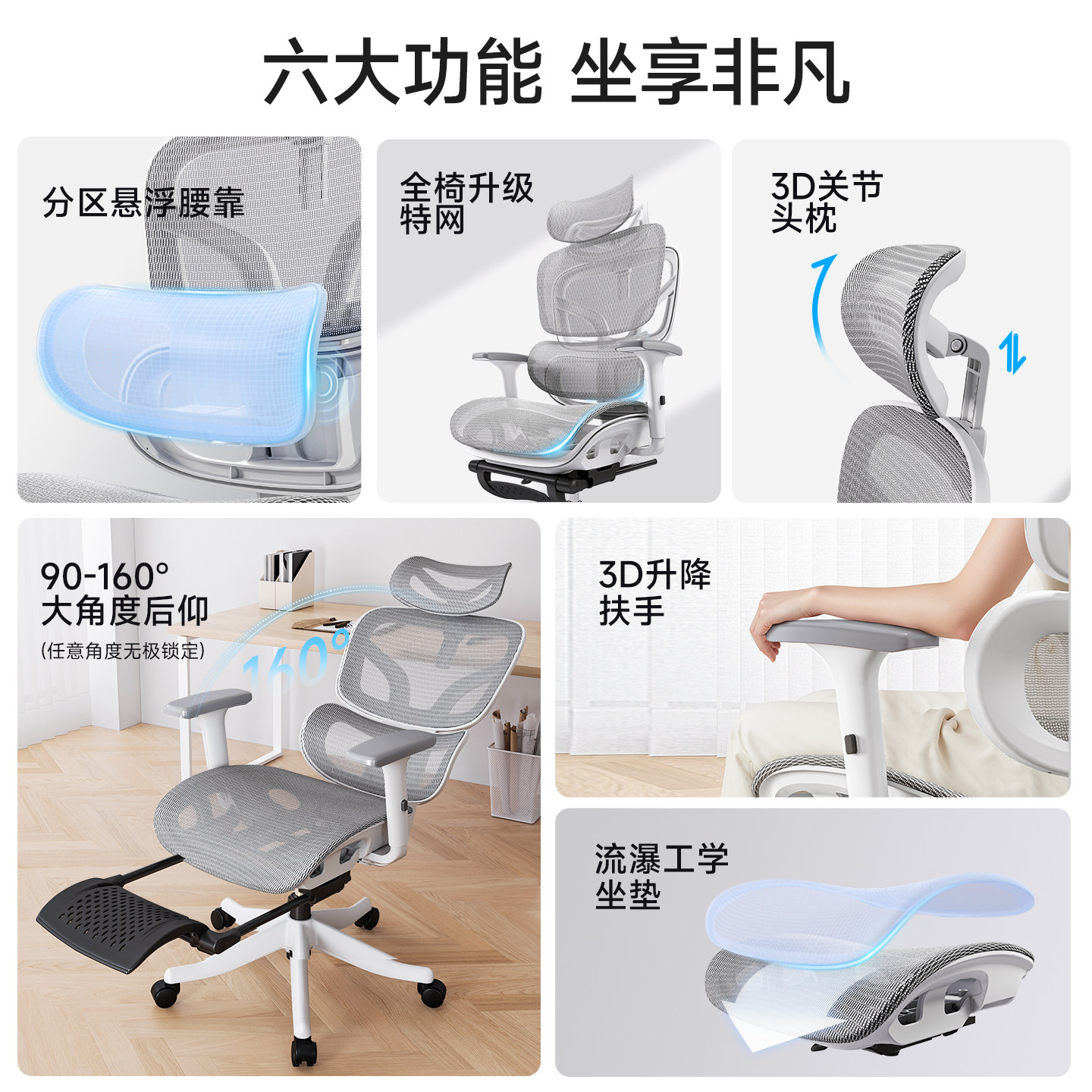 📚 办公室午睡两用可躺平午休护腰电竞椅家用久坐电脑椅人体工学椅子