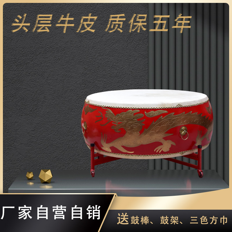 📚 牛皮鼓头层牛皮大鼓中国红鼓实木战鼓龙鼓舞蹈打节奏鼓鼓乐器扁鼓