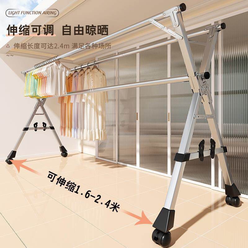 📚 折叠晾衣架室内家用阳台落地卧室不锈钢伸缩晾衣杆晒被子神器凉挂