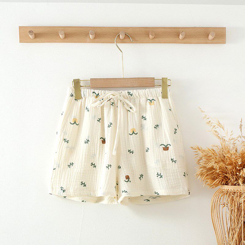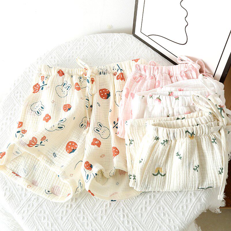 📚 纯棉纱布睡d裤女短裤夏全棉麻透气裤衩家居裤沙滩裤外贸居家睡衣