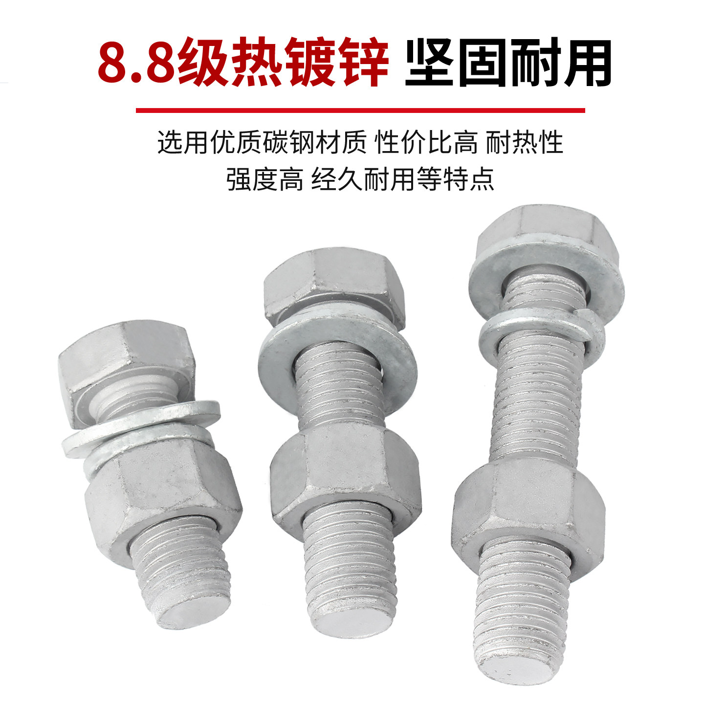 📚 8.8级热镀锌外六角螺栓套装高强度铁塔热浸锌螺丝螺母组合M8-M36