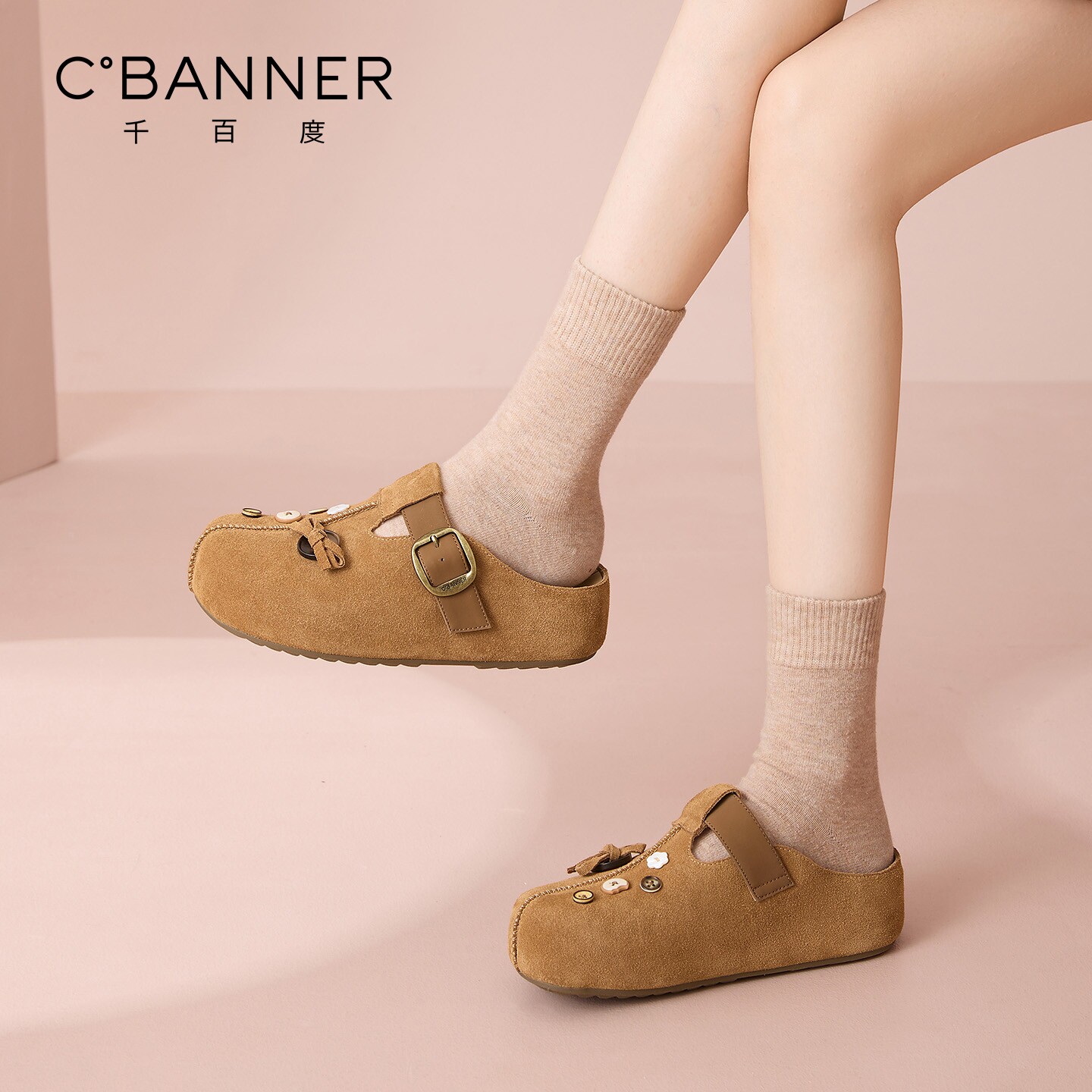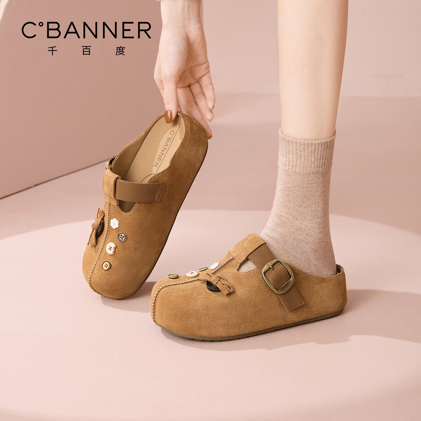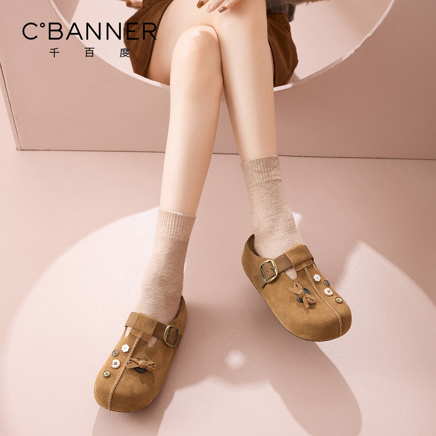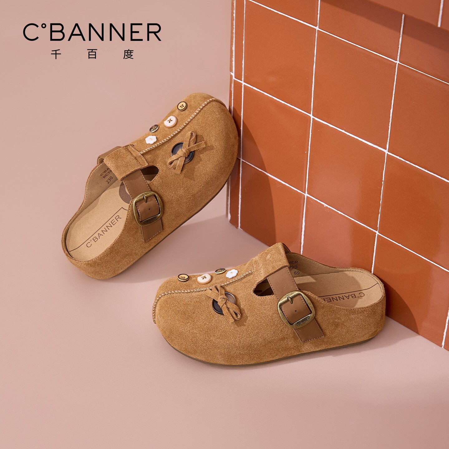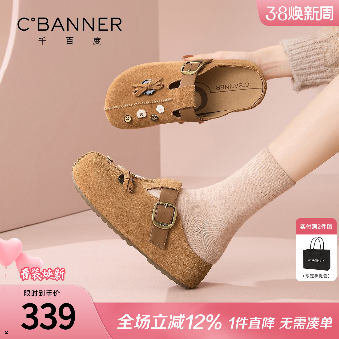 📚 千百度反绒皮厚底勃肯拖鞋女款2026春季新款百搭蝴蝶结休闲单鞋女