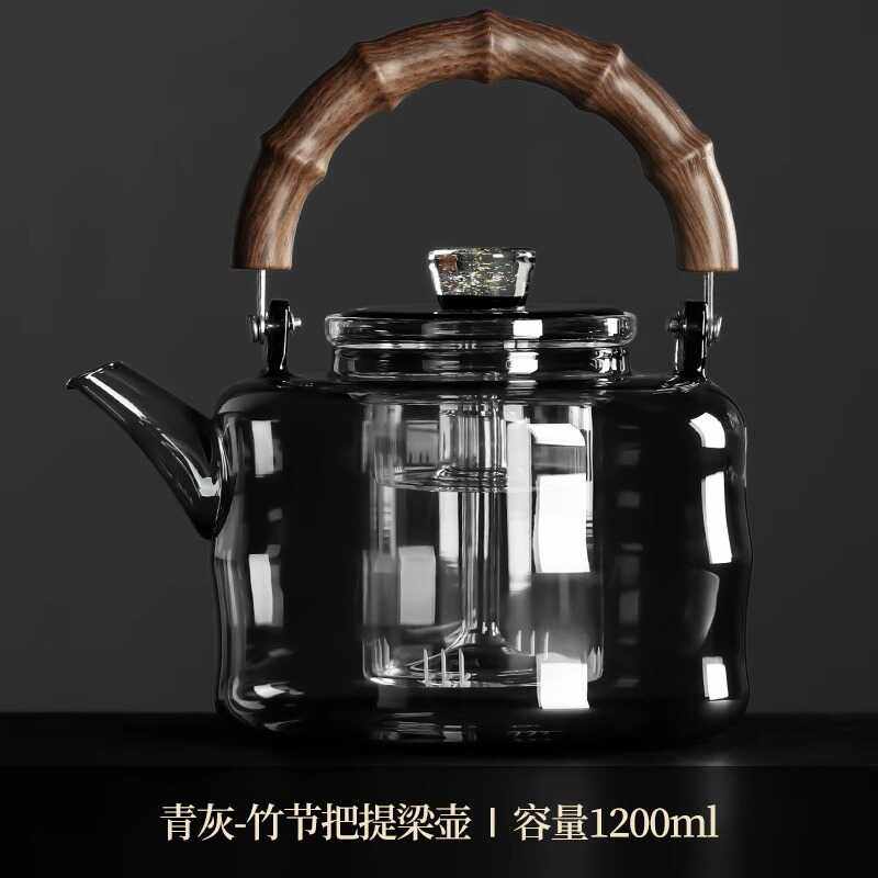 📚 玻璃茶具竹节提梁壶蒸煮一体陶瓷炉专用大容量耐高温茶器养生壶