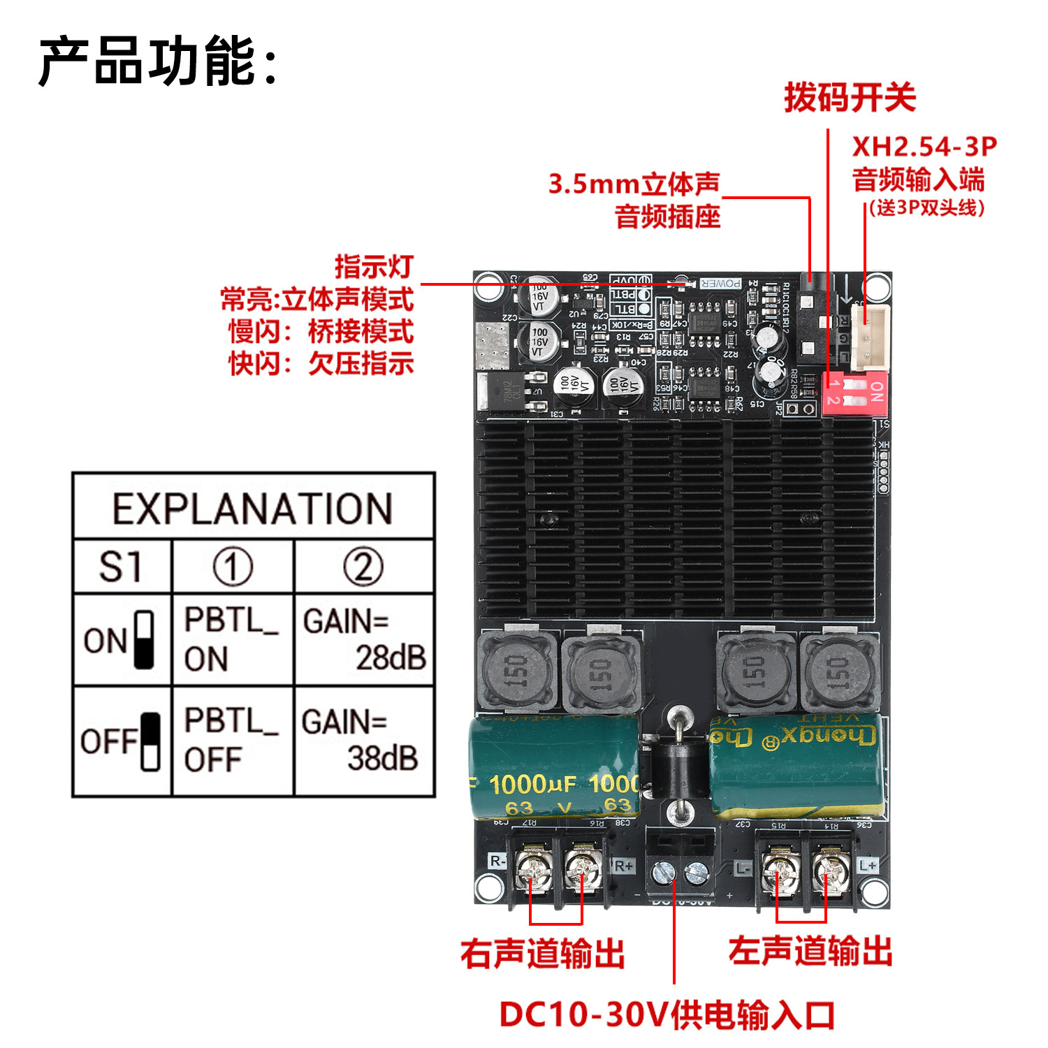 📚 ZK-2001纯后级功放板双声道100W+100W桥接单声道功放芯片TPA3221