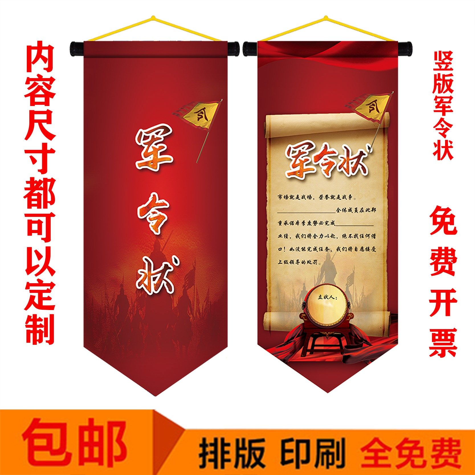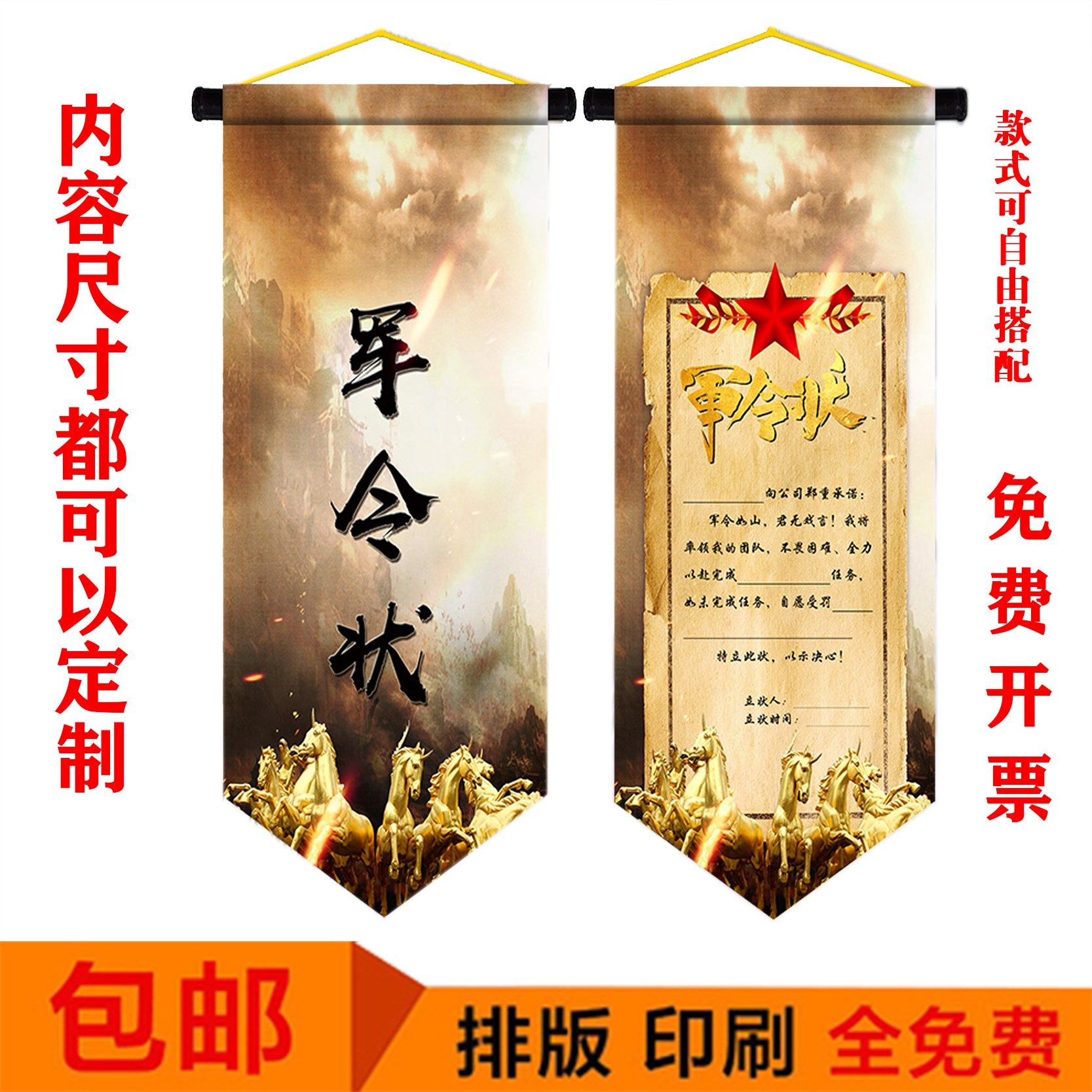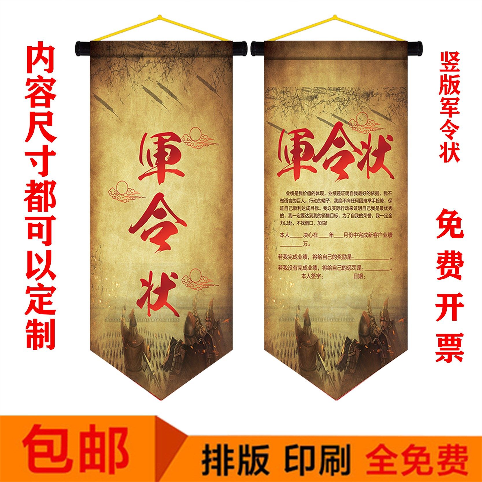 📚 军令状 挂旗 圣旨 责任状 任务状 竖版挑战书 荣誉证书 卷轴定制