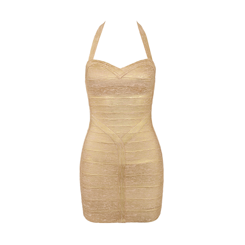 📚 House of CB奢华金箔挂脖式弹力绷带迷你连衣裙The Supermodel
