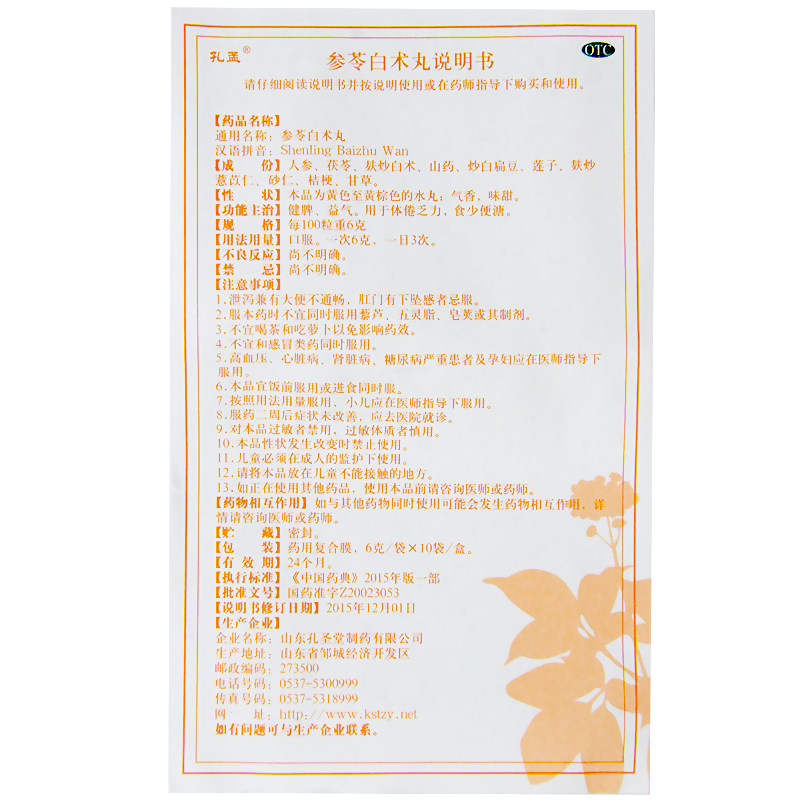 📚 孔孟 参苓白术丸6g*10袋/盒 健脾益气用于体倦乏力食少便溏正品