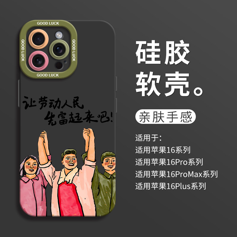 📚 创意劳动人民适用iPhone16全包瞳眼手机壳14pro苹果12液态15pro硅胶7/8壳16promax保护套ip13男女个性情侣