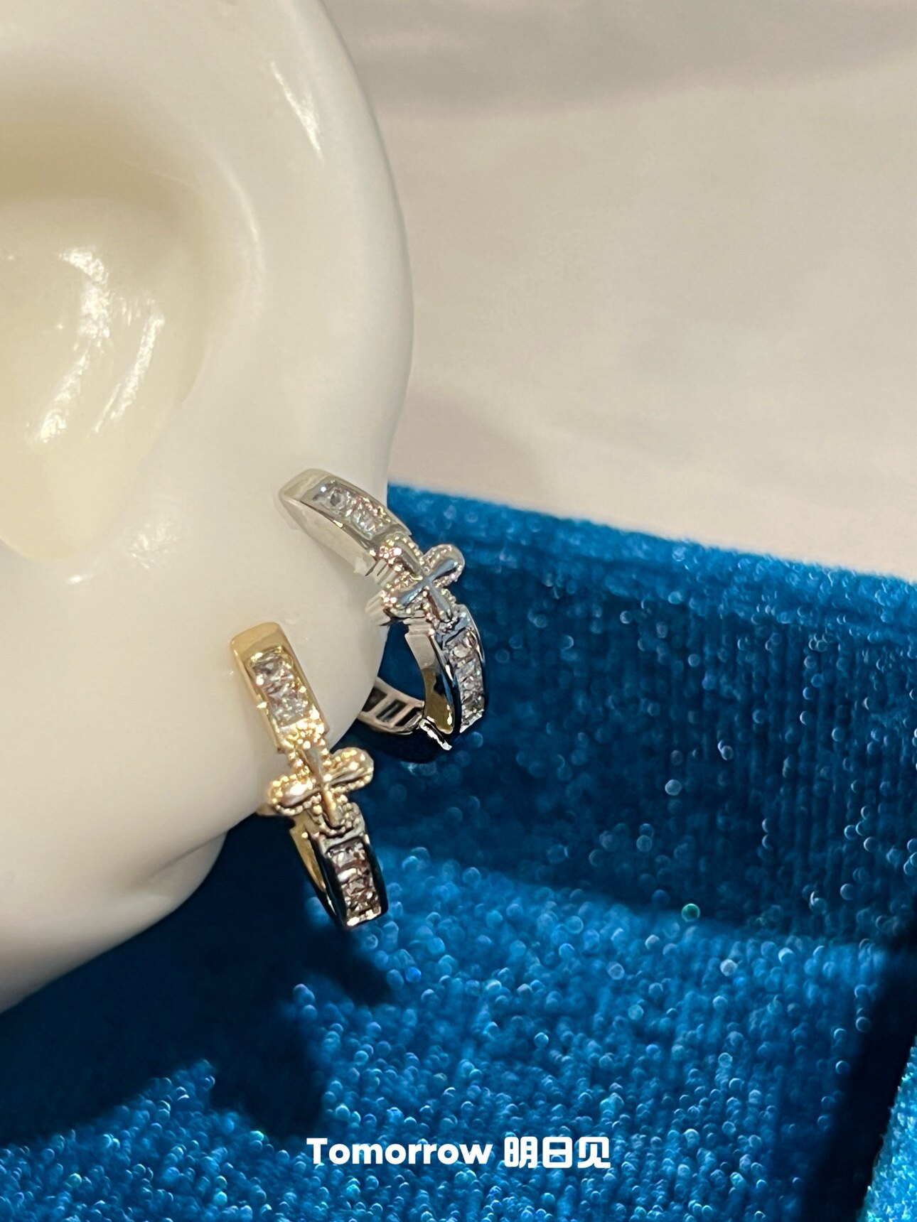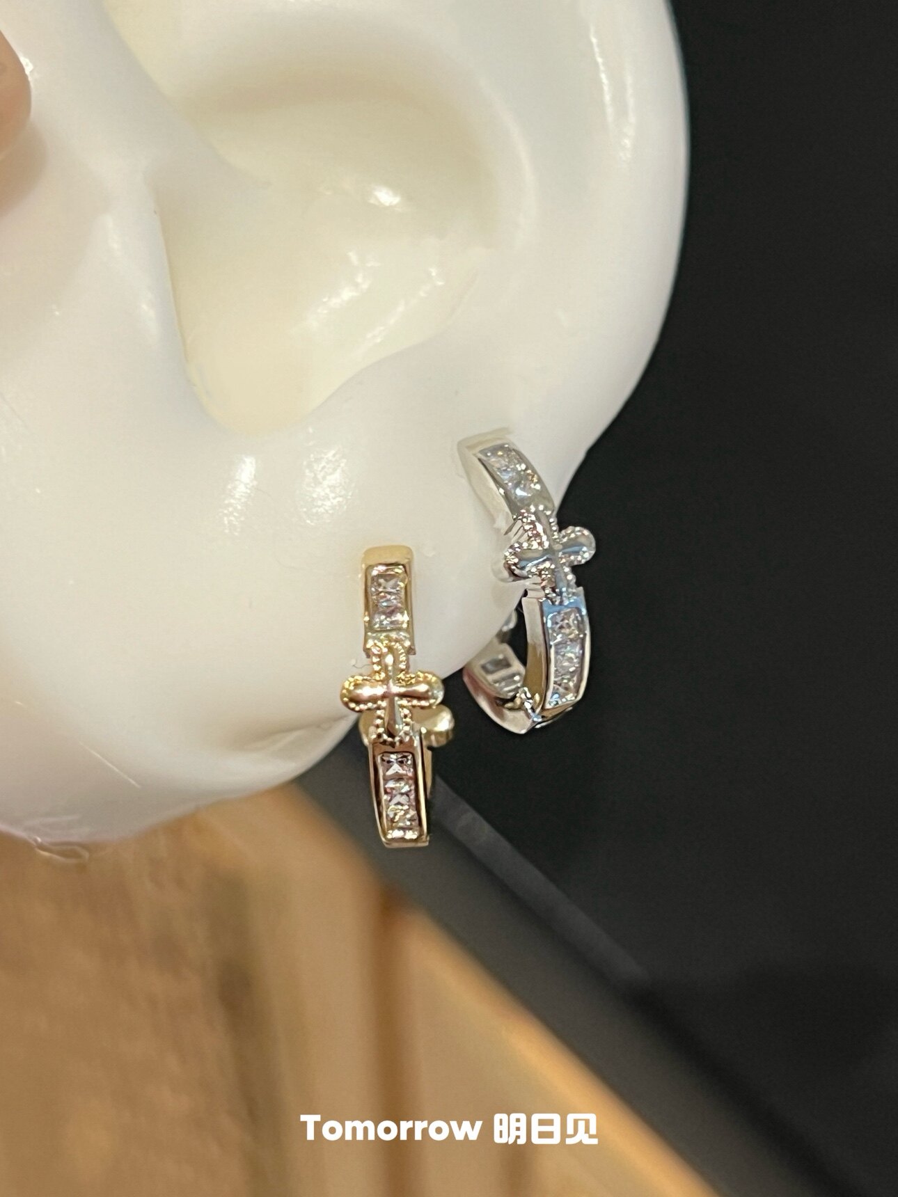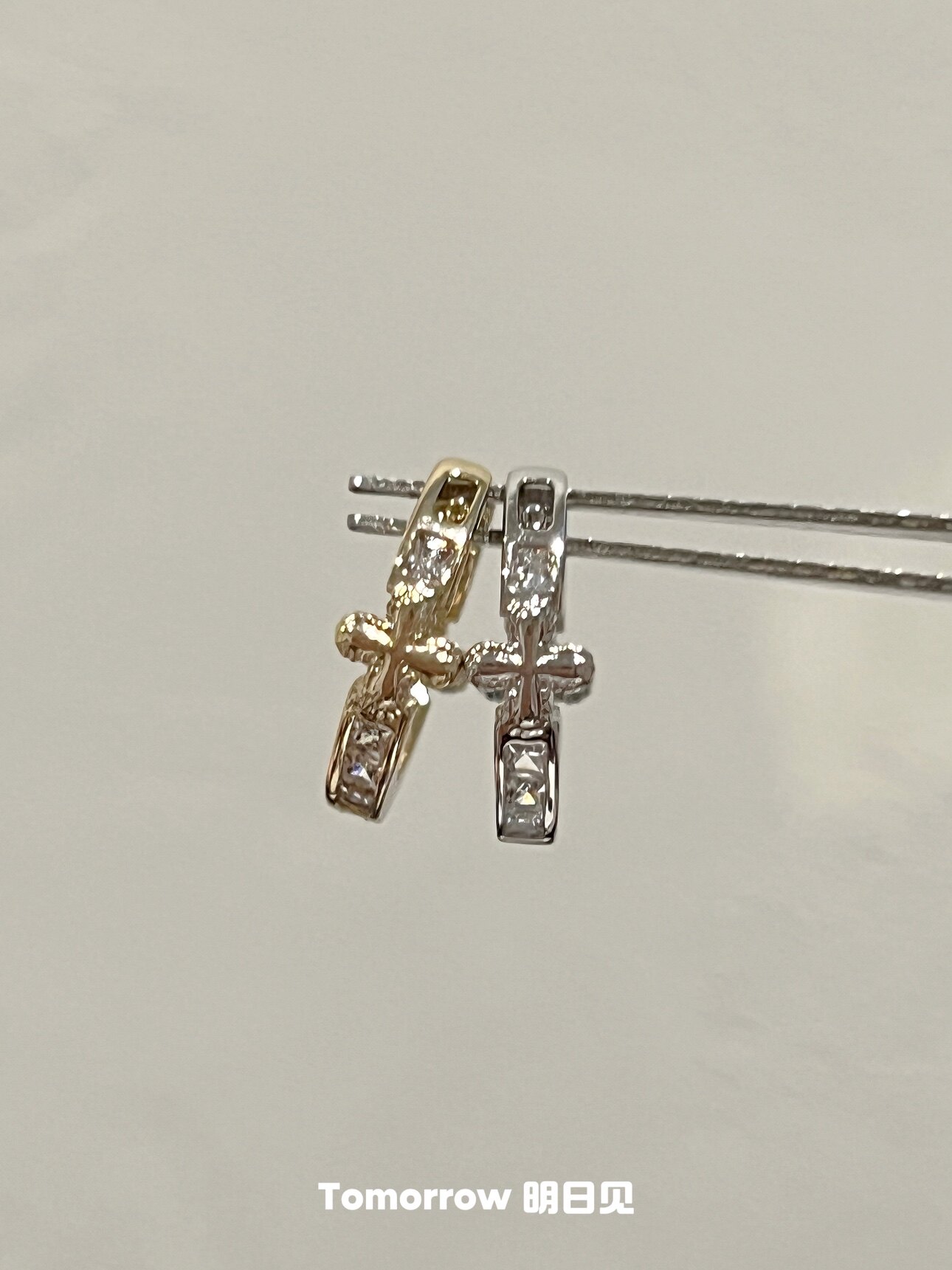📚 明日见| 德古拉伯爵 浅咖金十字架直针养耳洞防敏耳圈耳扣男女款