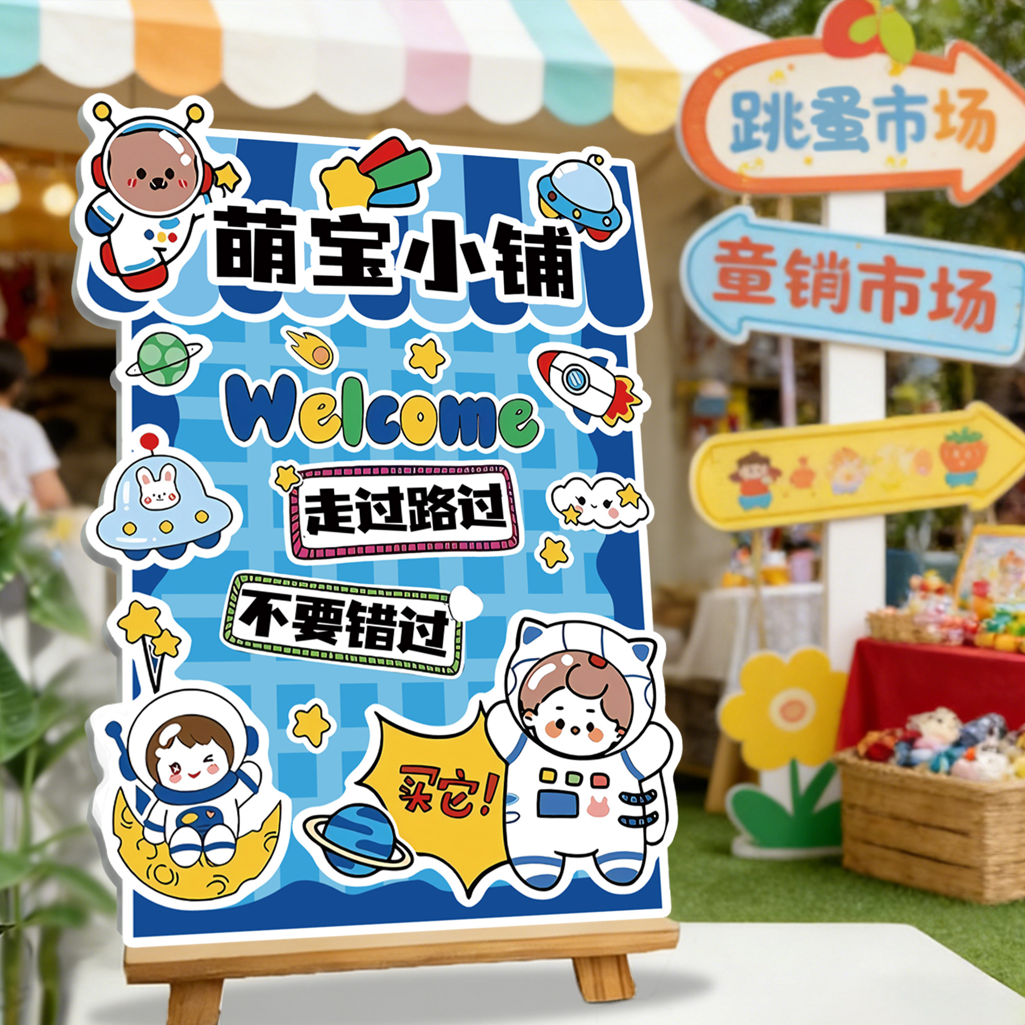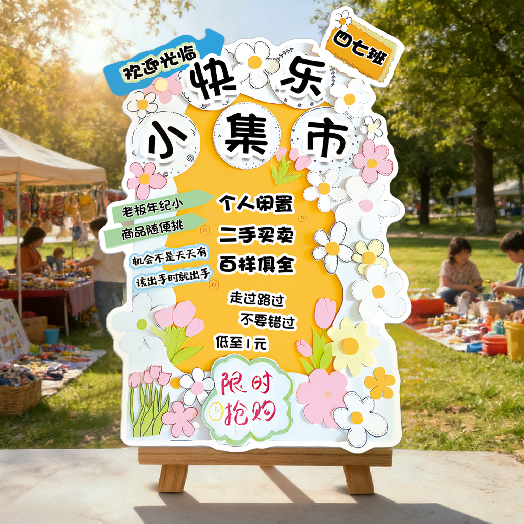 📚 跳蚤市场儿童摊位牌小学幼儿园义卖活动布置装饰海报广告牌展架hb