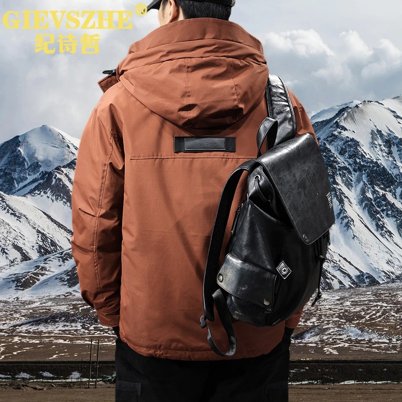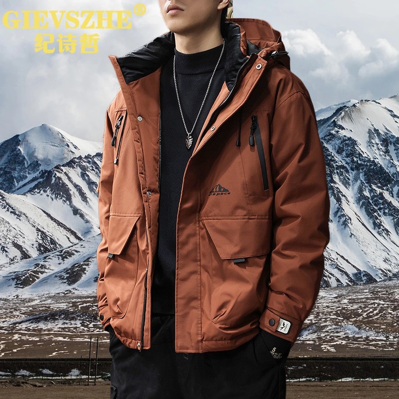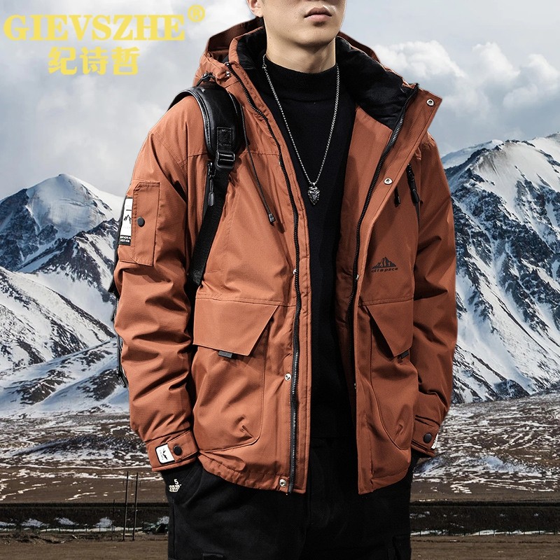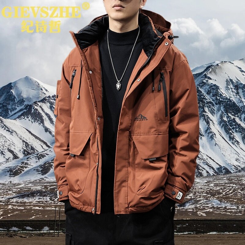 📚 纪诗哲2025冬季新款工装冲锋衣90灰鸭绒宽松加厚连帽羽绒服外套男