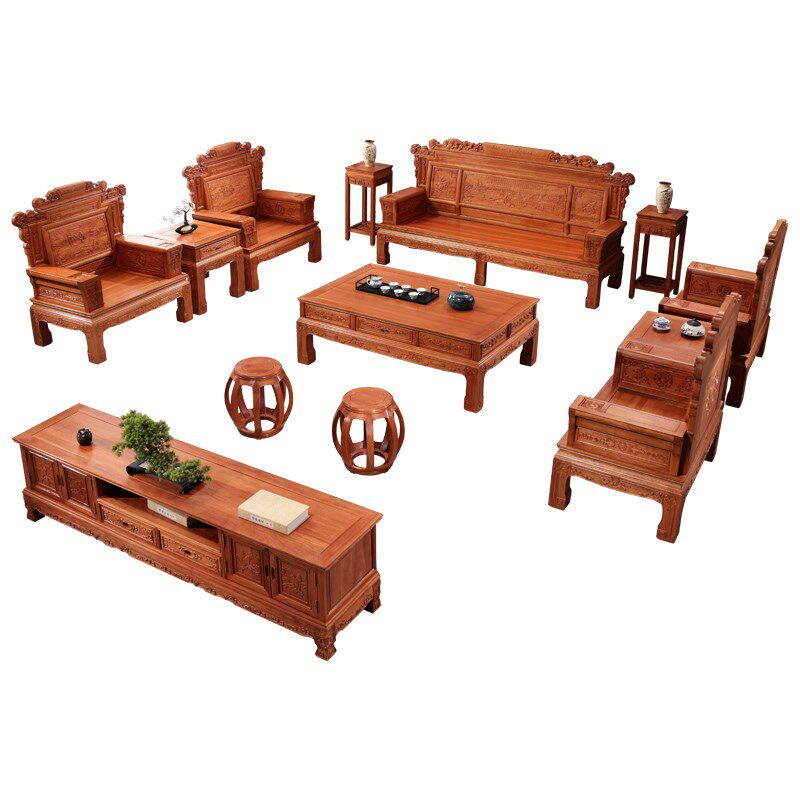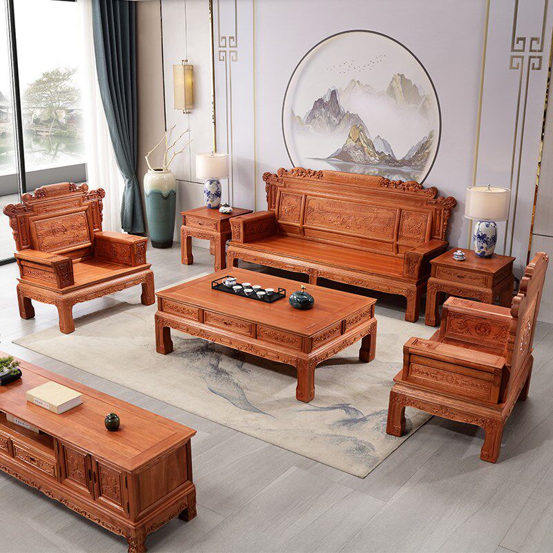 📚 红木沙发组合中式明清r古典雕花别墅大户型花梨木全实木格木沙发