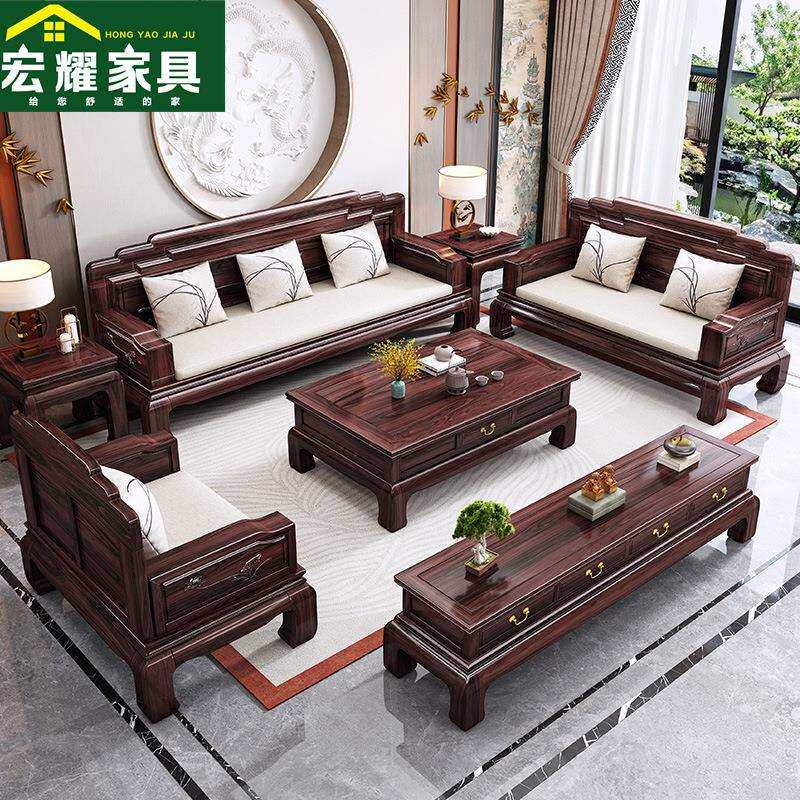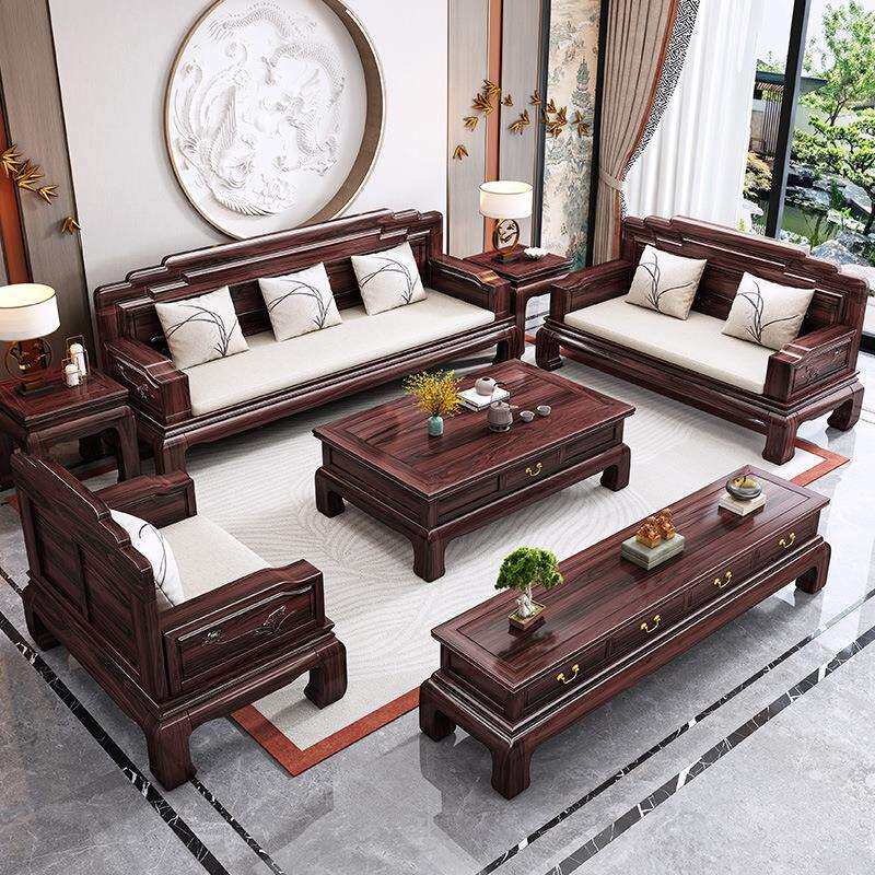 📚 新中式实木格木沙发全套组合客厅沙发小户型实木沙发双人沙发
