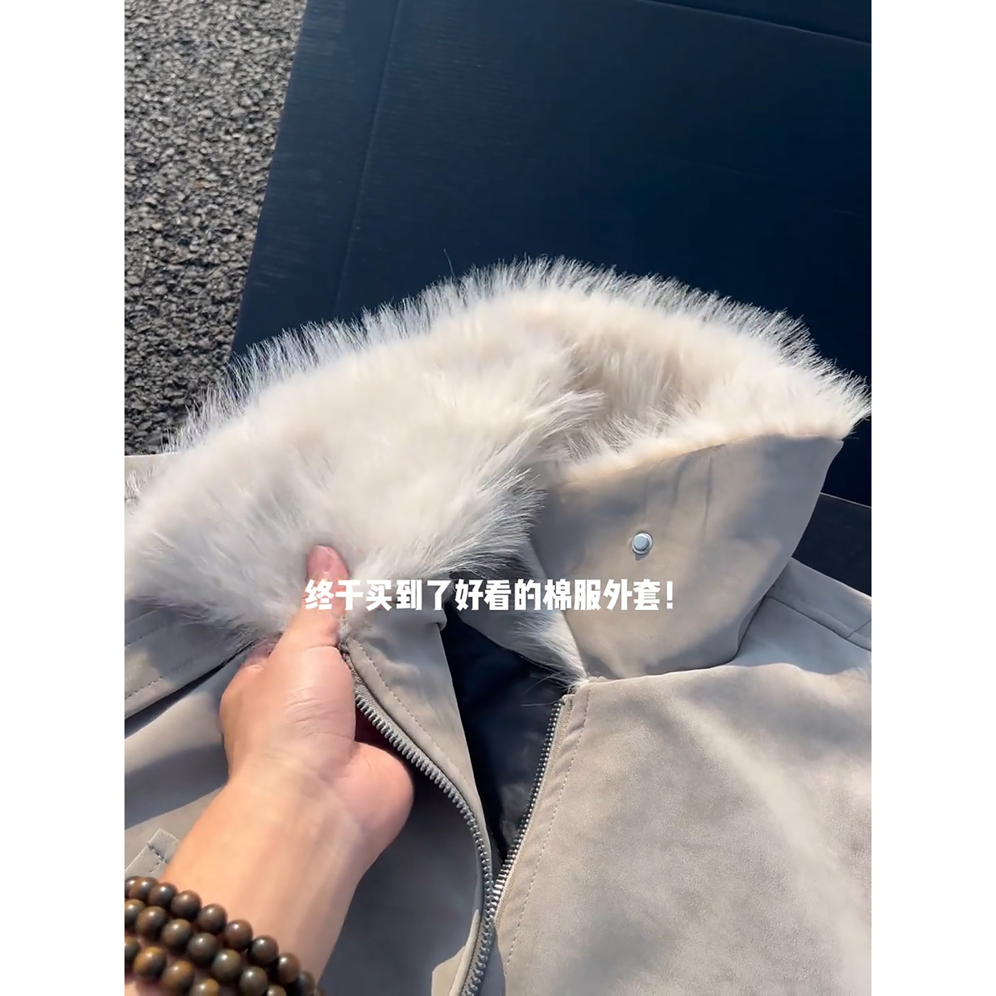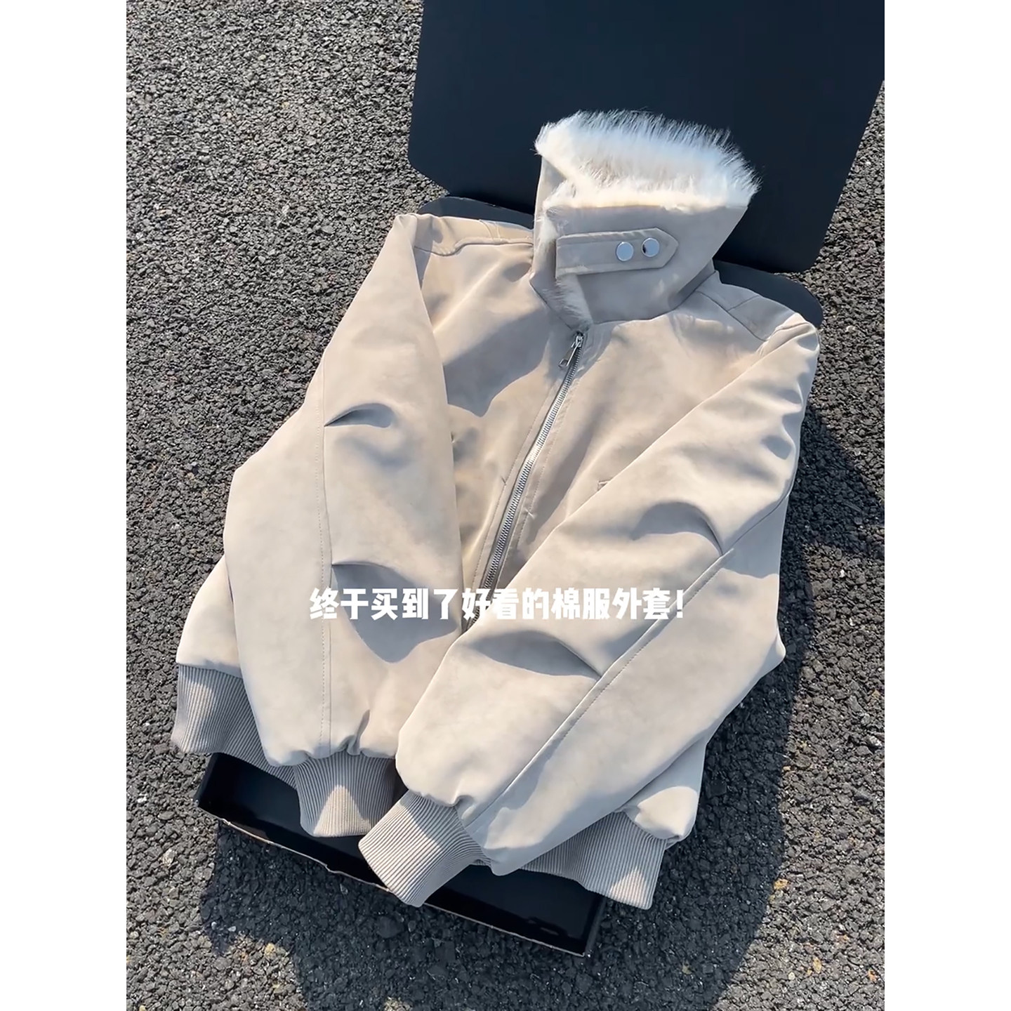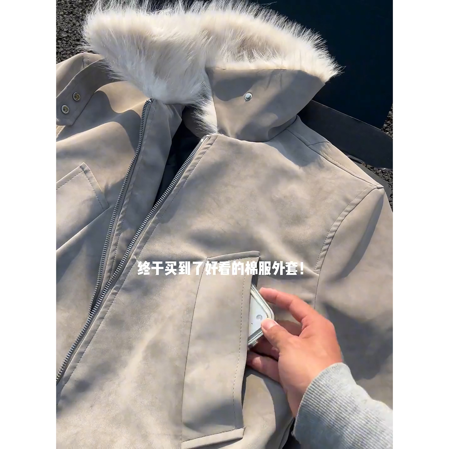 📚 美式雾面pu皮座山雕外套男款冬季高级感痞帅棉服加厚保暖毛领棉衣
