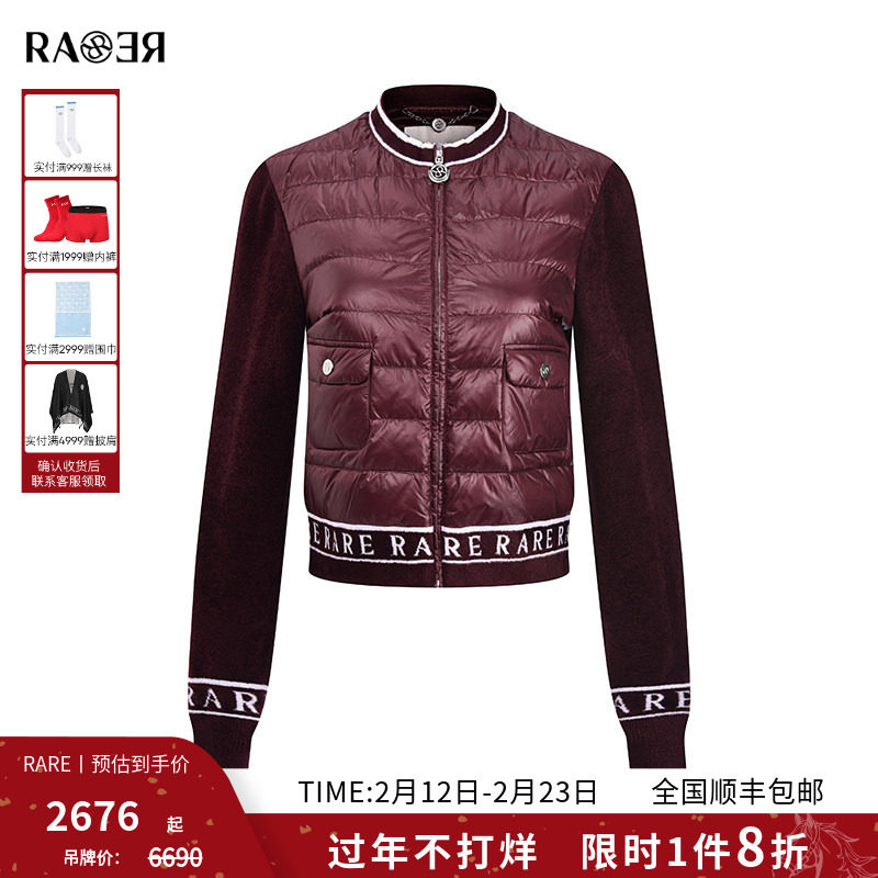 📚 RARE威雅女装 秋冬新款针梭相拼酒红休闲羽绒服RR2246130311