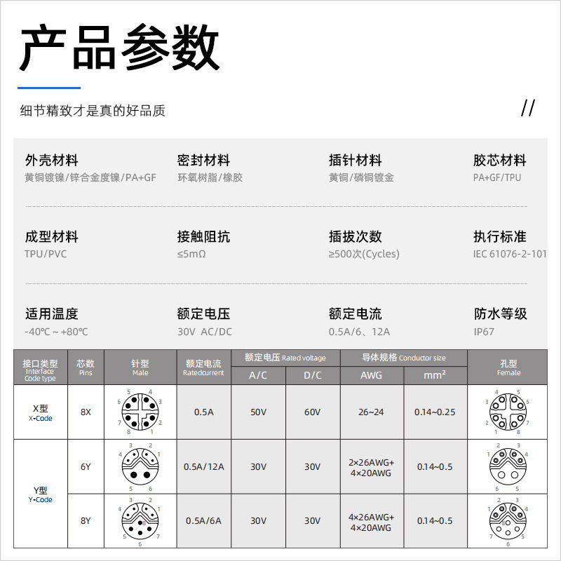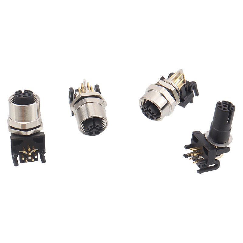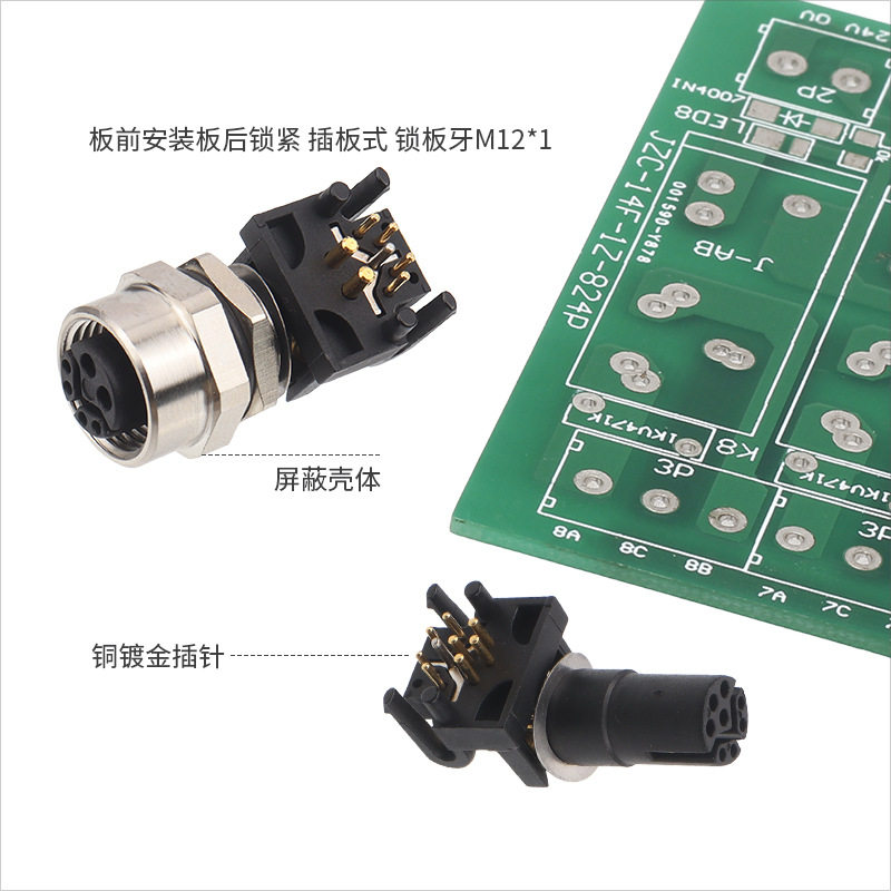 📚 正成M12数据型防水连接器Y编码孔型弯插座6PIN8芯插板式PB母插座
