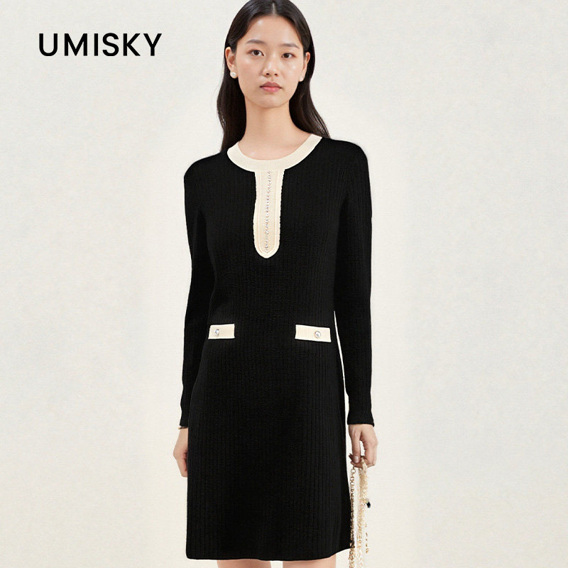 📚 umisky优美世界女装秋冬时尚气质收腰显瘦针织连衣裙SK4A1201