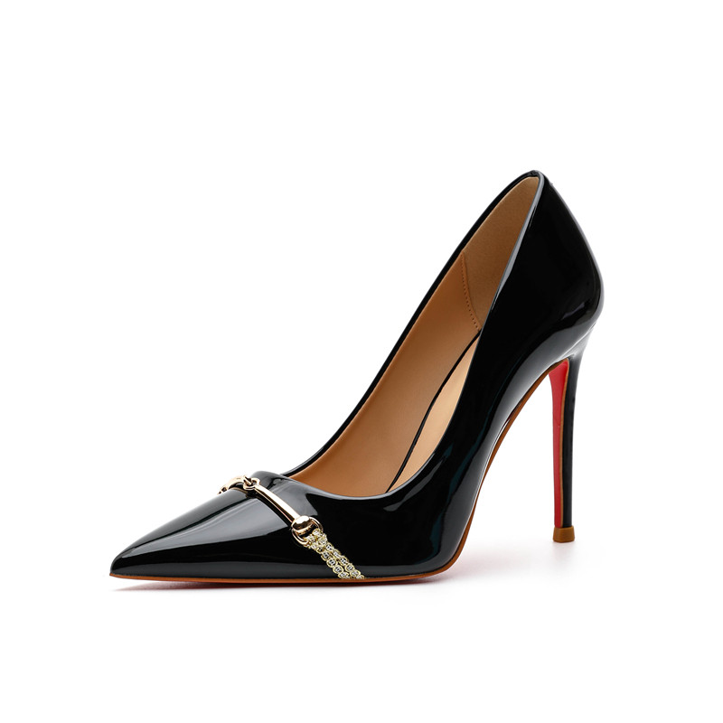 📚 迷人高跟鞋女酒店新款细跟设计感小众尖头红底女鞋搭扣淑女洋气夏