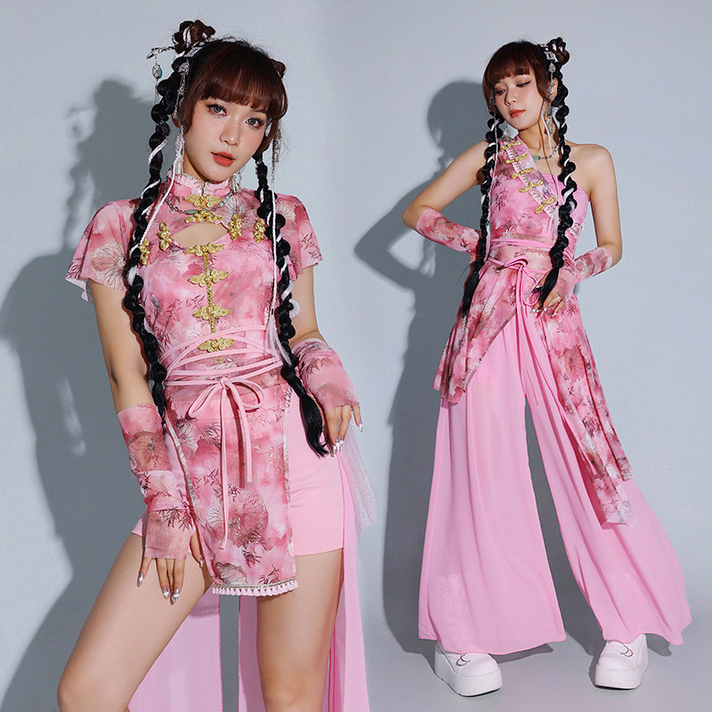 📚 女团演出服2025韩舞kpop打歌服新款成人套装粉色中国风爵士舞蹈服