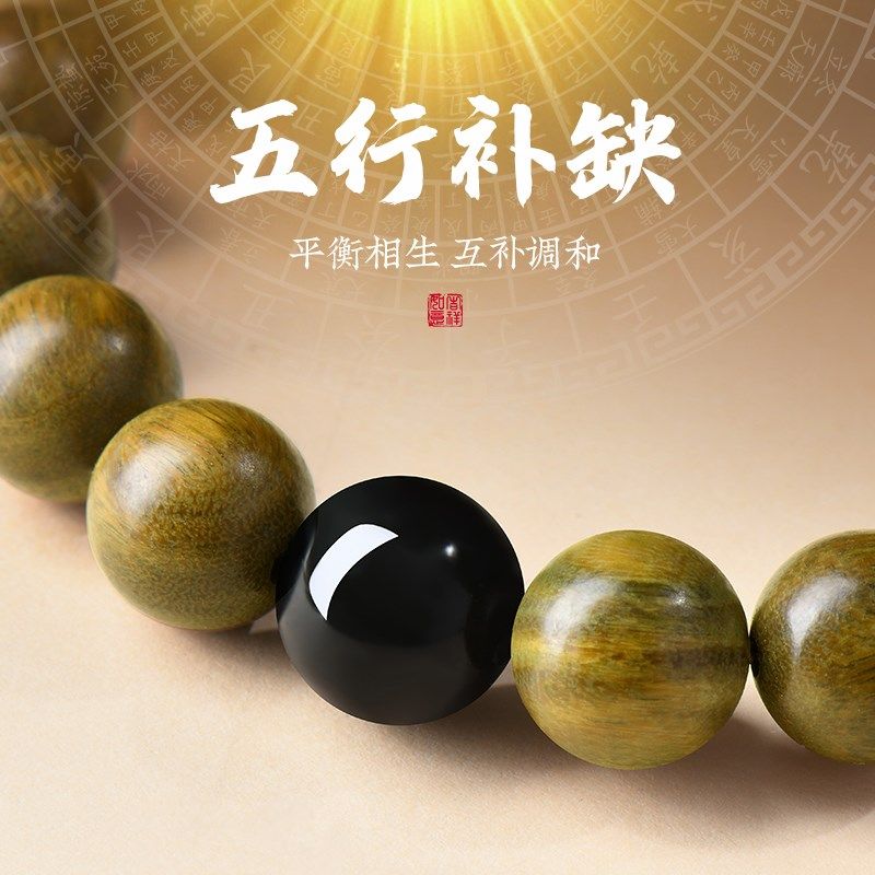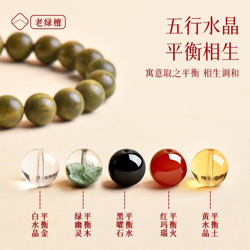 📚 【五行补水】天然绿檀木五行手串女款手链檀香木质文玩佛珠送女友
