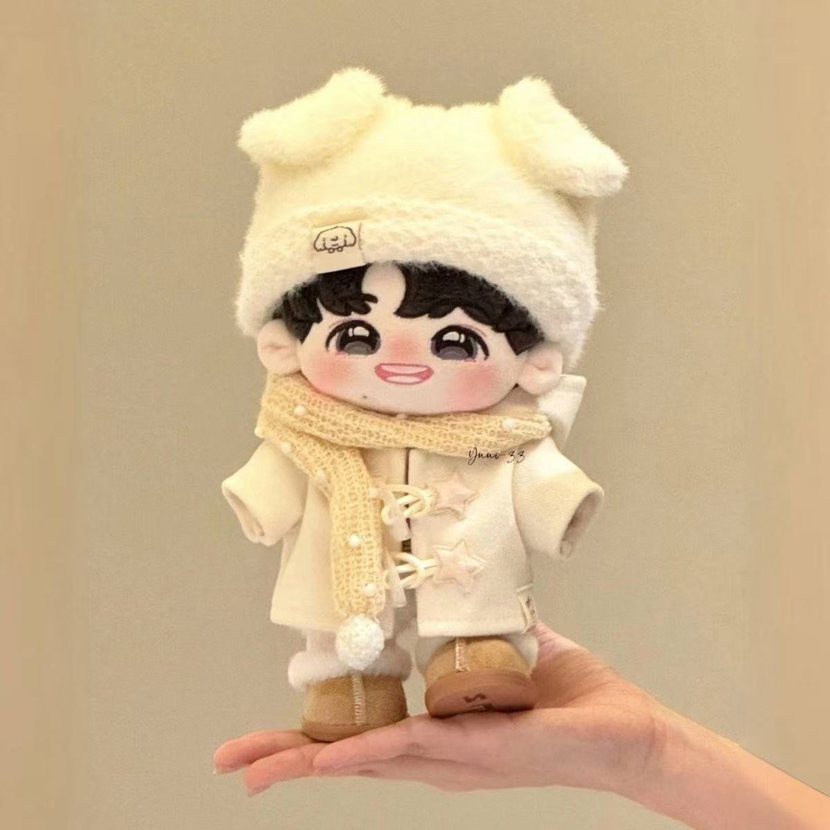 📚 20cm冬新品毛茸茸系列白色大衣可爱棉花娃娃娃衣衣服玩偶套装替换