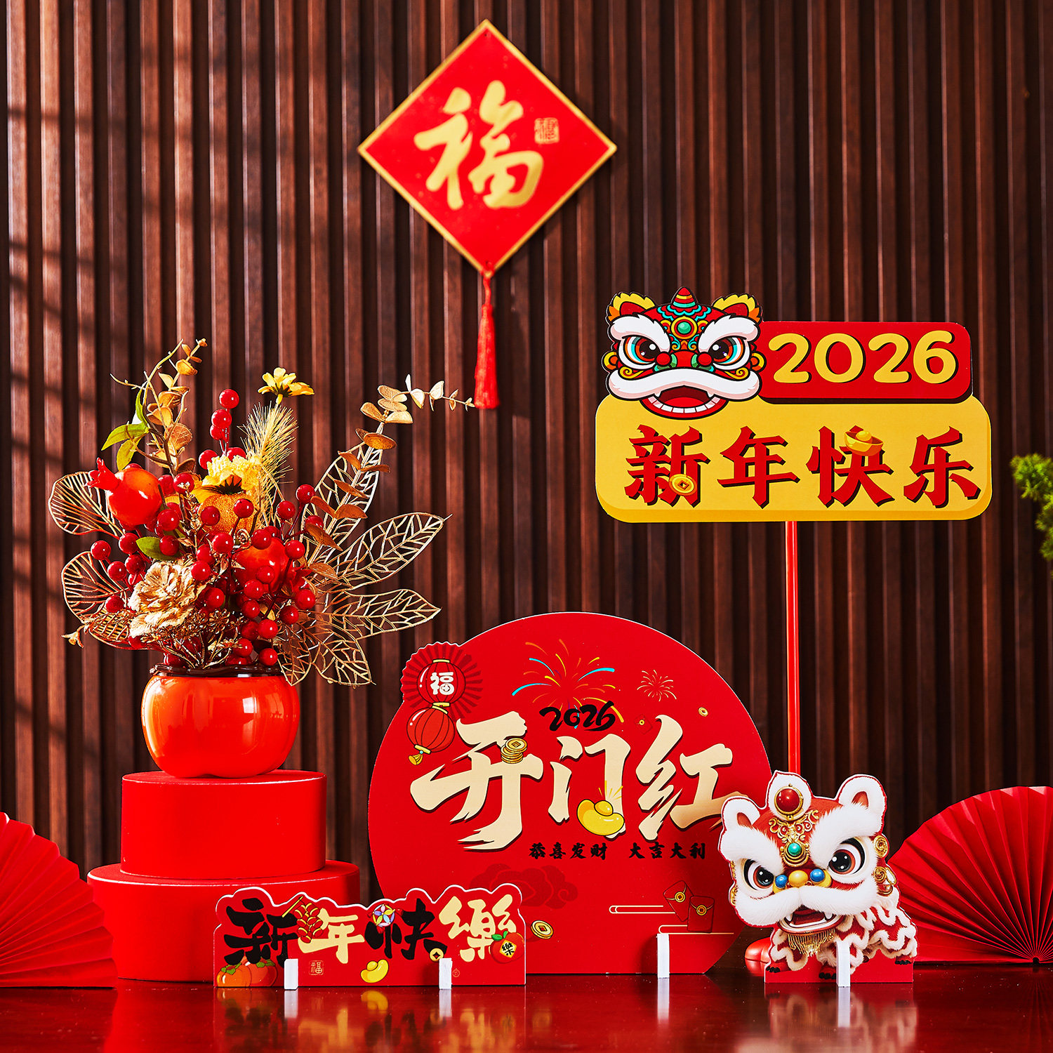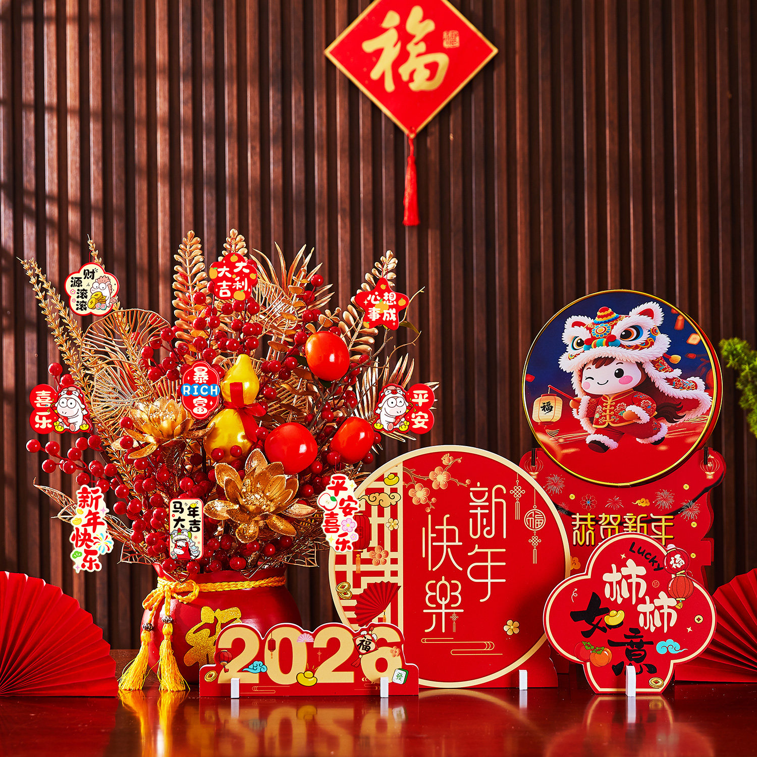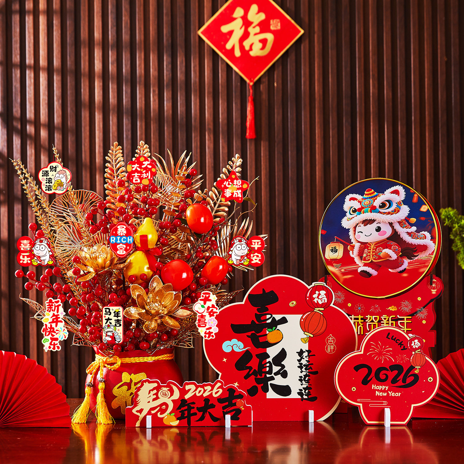 📚 2026新年春节装饰过年商场柜台酒店前台桌面福桶马年场景布置摆件