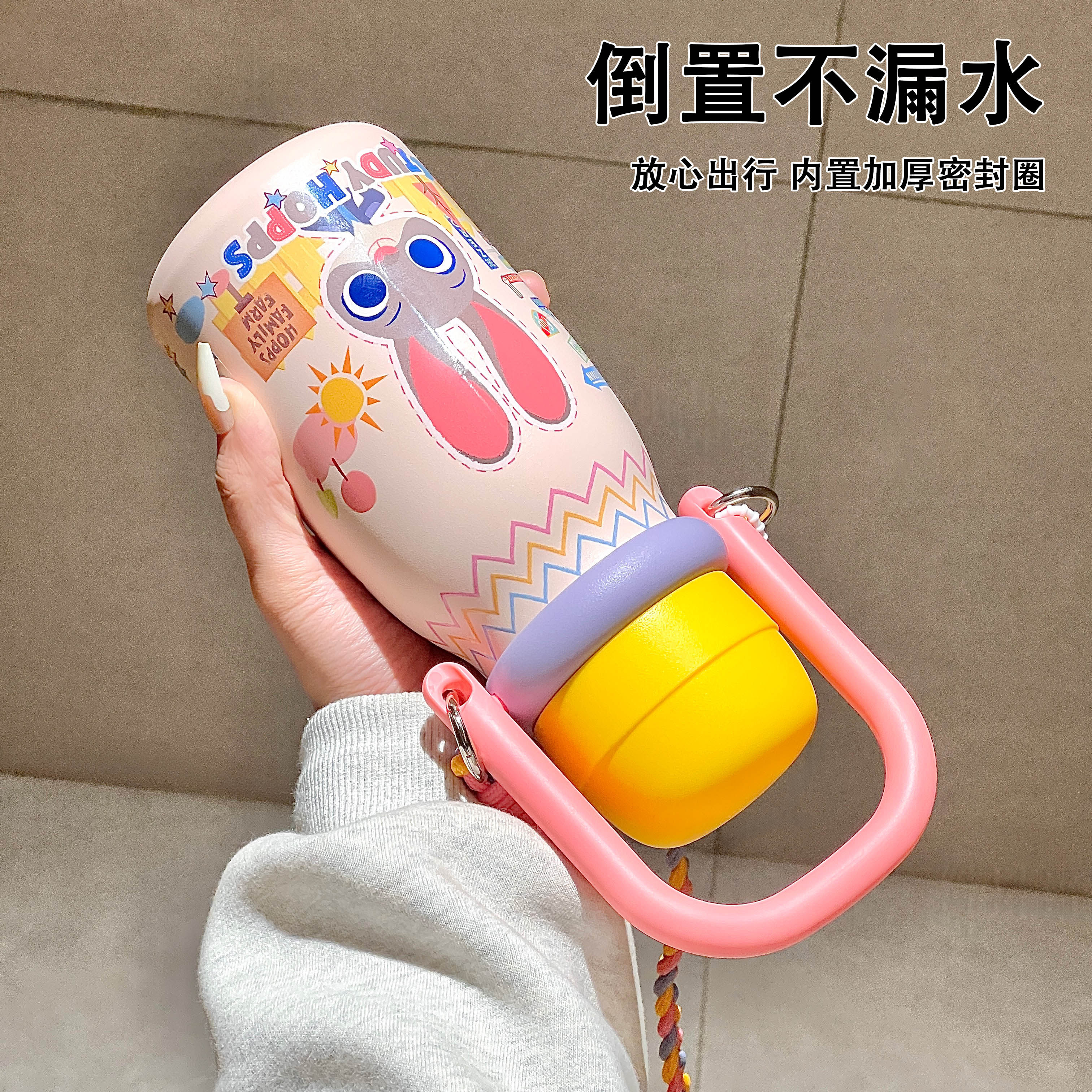 📚 疯狂动物城朱迪保温杯女生高颜值吸管水杯学生上学专用便携双饮杯