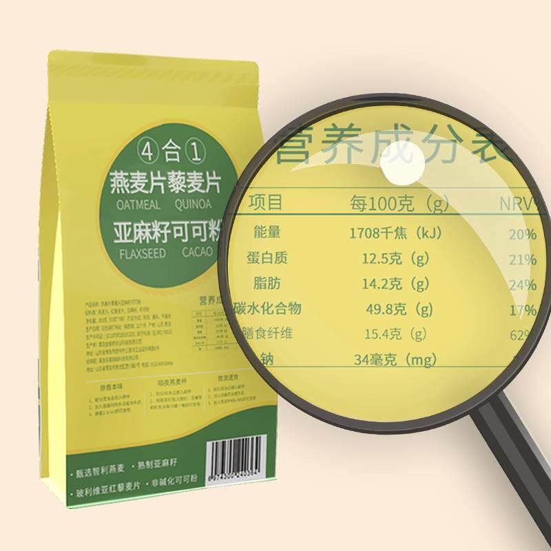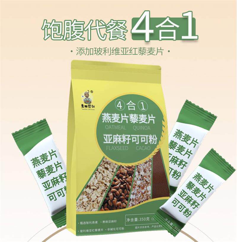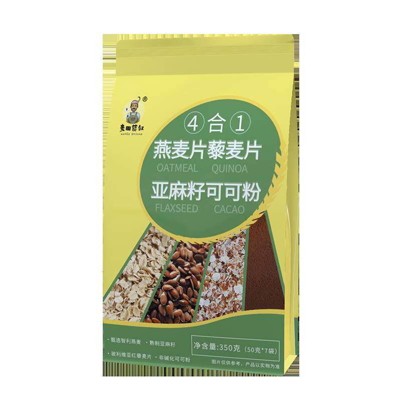 📚 麦田藜叔四合一麦片燕麦片藜麦片亚麻籽可可粉隔夜燕麦袋装350克