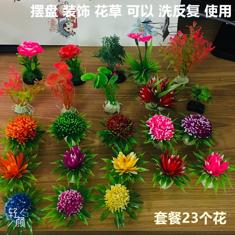 📚 酒店菜品刺身拼盘特色菜创意盘头点缀摆盘装饰仿真花草盘饰小摆件