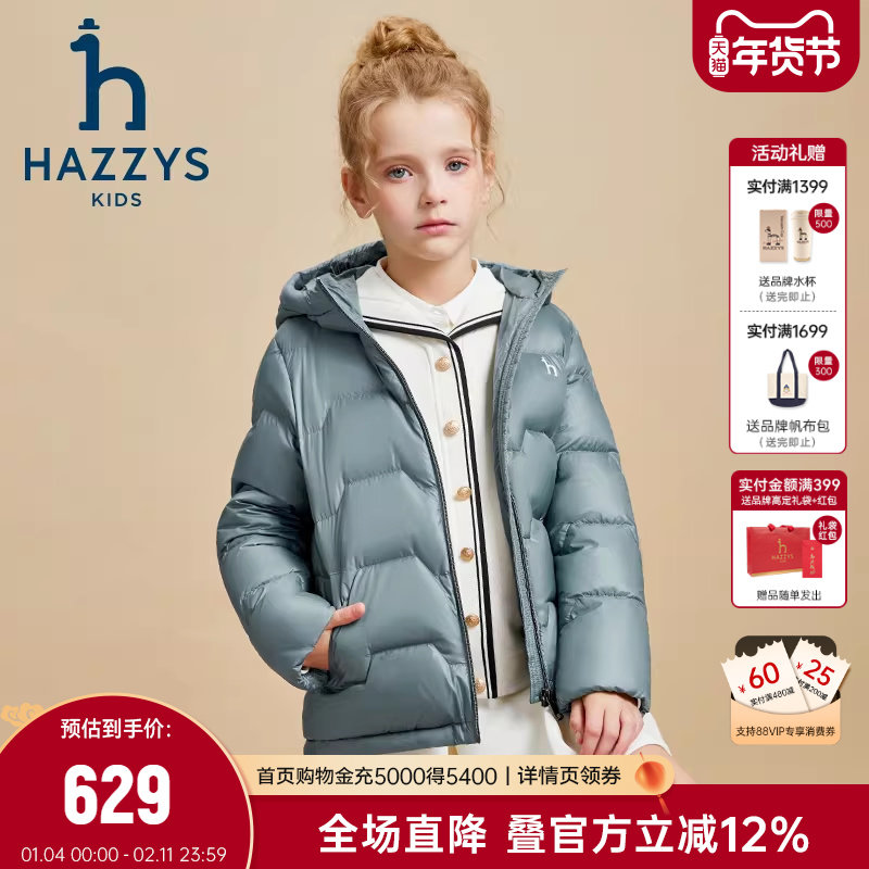 📚 hazzys哈吉斯童装男女童鹅绒羽绒服冬新蓄热三防抑菌外套