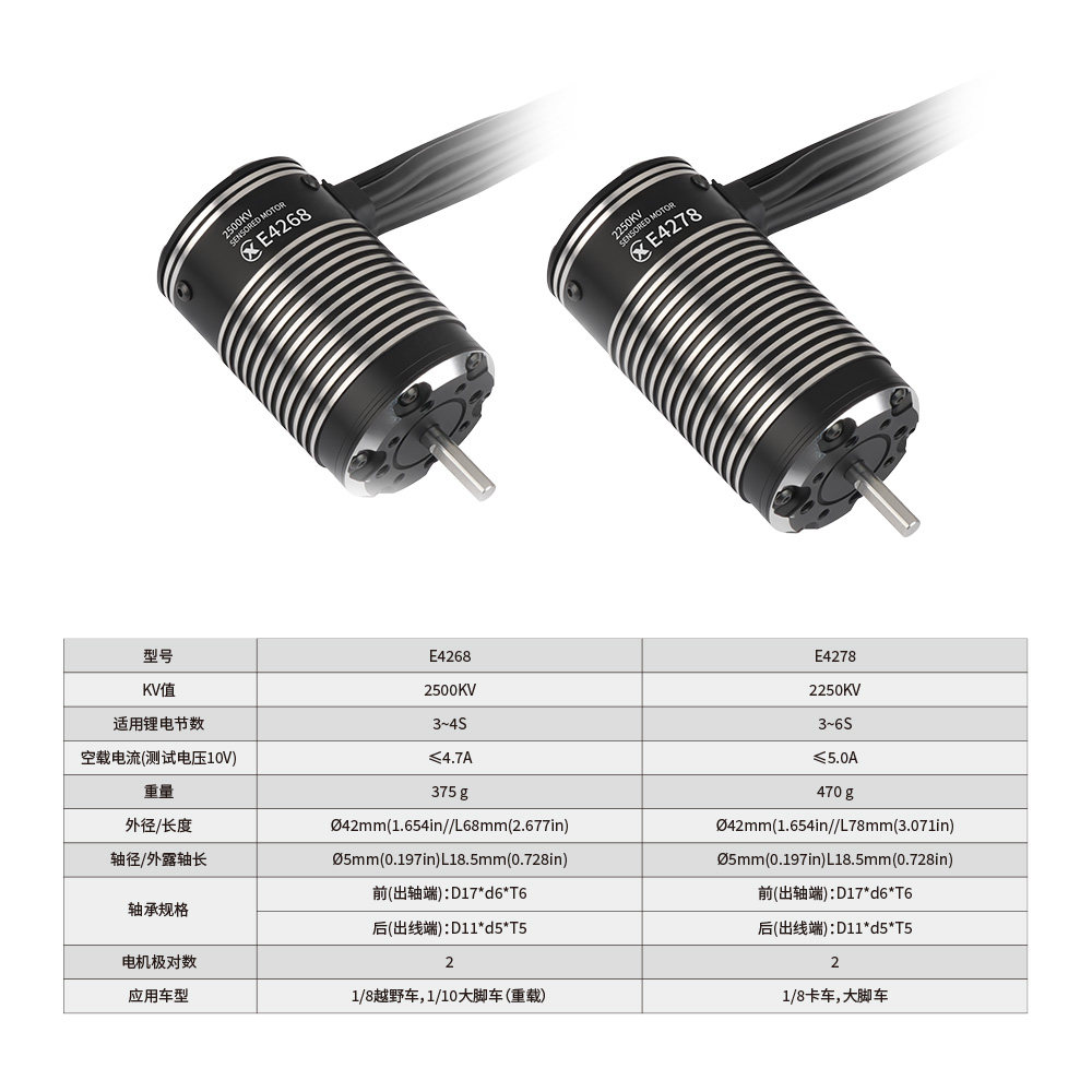 📚 雄才科技E4268 2500kv E4278 2250kv有感无刷电机防水1/8车适用