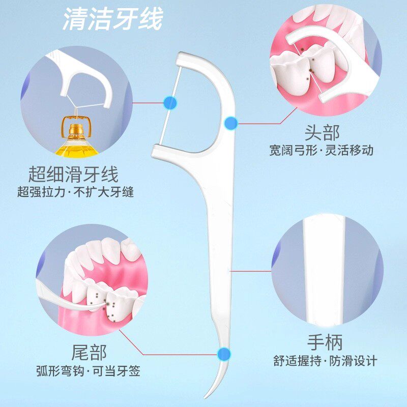 📚 超细高弹力牙线棒50支盒装成人防塞牙口腔清洁神器牙签线家庭装