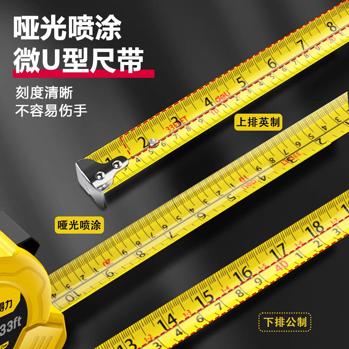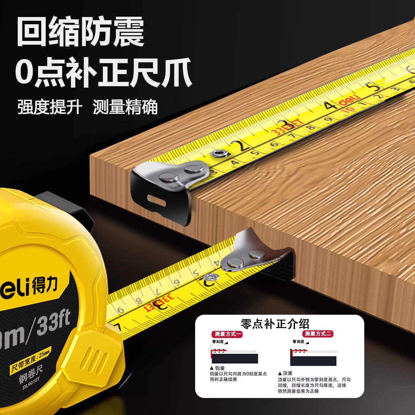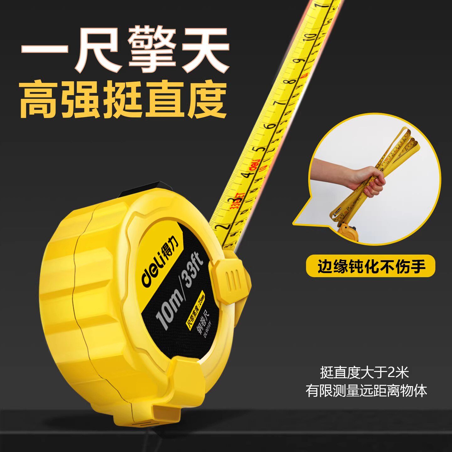 📚 得力公英制钢卷尺3米5米10盒尺高精度测量工具英寸双刻度加厚米尺