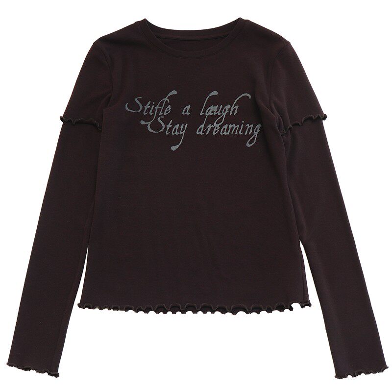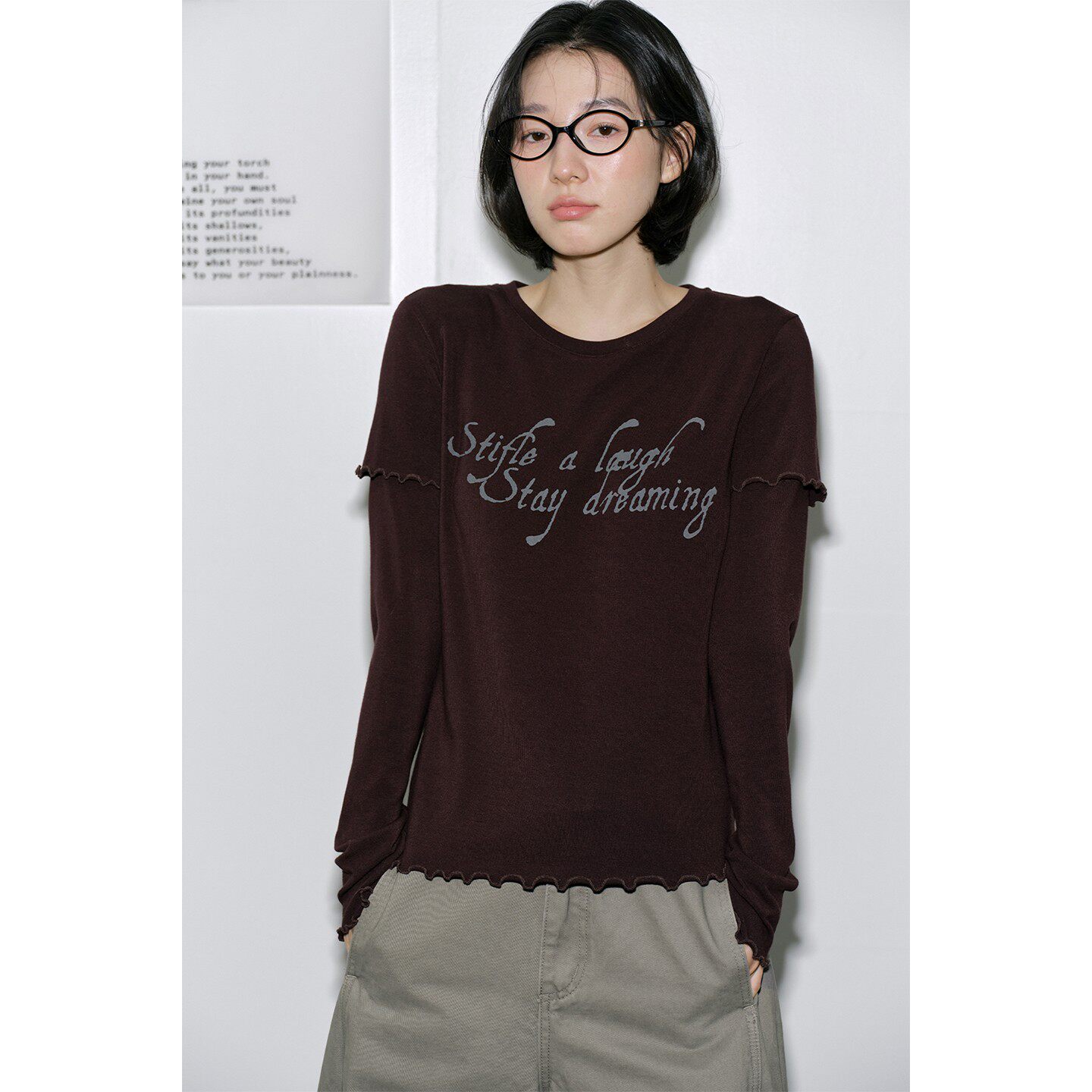 📚 鹿与飞鸟“妙趣拼接”软弹微毛感假两件木耳边两色打底上衣7084