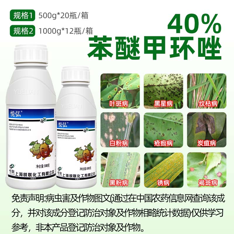 📚 悦联悦弘 40%苯醚甲环唑 果树香蕉叶斑病黑星病白粉病农药杀菌剂