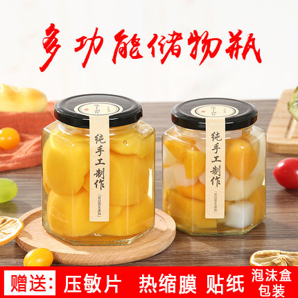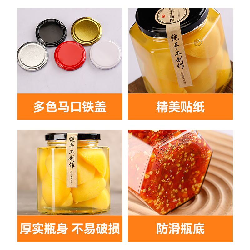 📚 玻璃密封罐食品级六棱罐头瓶空瓶辣椒酱蜂蜜果酱专用储存罐空瓶子